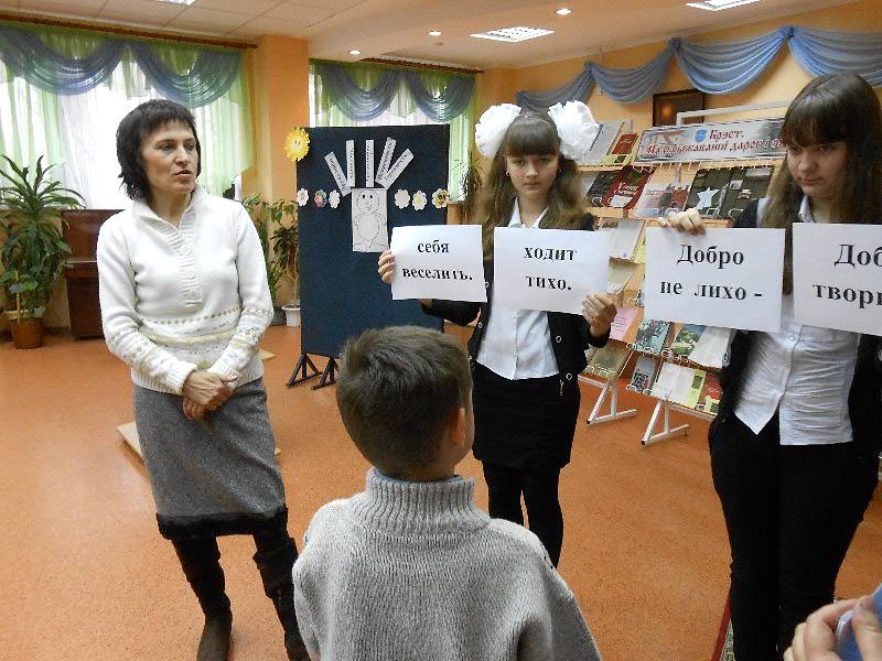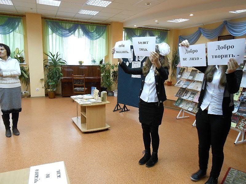 31 îêòÿáðÿ â ÖÃÄÁ èì. À. Ñ. Ïóøêèíà ïðîøëî î÷åðåäíîå çàñåäàíèå êëóáà «Äàáðûíÿ» íà òåìó «Òâîðÿ äîáðî, ìû èñöåëÿåì äóøó». Ãëàâíàÿ öåëü âñòðå÷è – äîíåñòè äî äåòåé ìûñëü, ÷òî íóæíî äåëàòü äîáðî äðóãîìó, à çëîé ÷åëîâåê ðàçðóøàåò íå òîëüêî ñåáÿ, íî è ìèð âîêðóã. Íà ìåðîïðèÿòèè ïðèñóòñòâîâàëè íå òîëüêî ÷ëåíû êëóáà (äåòè âñïîìîãàòåëüíîé øêîëû), íî è äåòè-èíâàëèäû ãîðîäà. Íà âñòðå÷ó ïðèø¸ë êëèðèê íàøåãî ïðèõîäà èåðåé Ìèõàèë Äåðêà÷ è äåòè íàøåé Âîñêðåñíîé øêîëû.