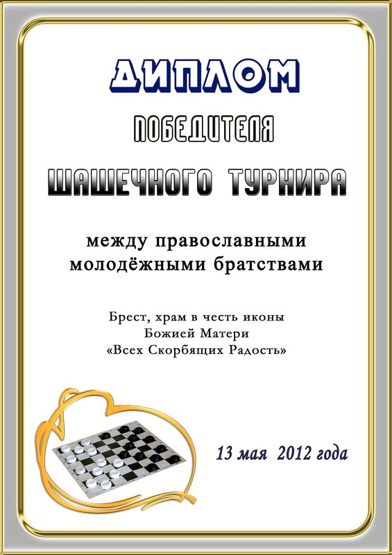 Íà âûõîäíûõ â íàøåì õðàìå ïðîøëî ñïîðòèâíîå ìåðîïðèÿòèå – øàøå÷íûé òóðíèð. Èãðà â «Ðóññêèå øàøêè», ñ íàãðàæäåíèåì ïîáåäèòåëåé, çàíÿâøèõ ïðèçîâûå ìåñòà.
