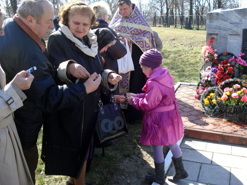 11 àïðåëÿ ñåãî ãîäà, ïî òðàäèöèè, âìåñòå ñ ÷ëåíàìè Áðåñòñêîé ãîðîäñêîé îðãàíèçàöèè áûâøèõ íåñîâåðøåííîëåòíèõ óçíèêîâ ôàøèçìà, ìû âíîâü ñîâåðøèëè çàóïîêîéíóþ ëèòèþ âîçëå ïàìÿòíîãî çíàêà ã.Áðåñòà, ðàñïîëîæåííîãî íà òîì ìåñòå, ãäå áîëåå 2.000 ìèðíûõ ãðàæäàí áûëè çàìó÷åíû íåìåöêî-ôàøèñòñêèìè çàõâàò÷èêàìè (11 àïðåëÿ îòìå÷àåòñÿ Ìåæäóíàðîäíûé äåíü îñâîáîæäåíèÿ óçíèêîâ ôàøèñòñêèõ êîíöëàãåðåé). Ïîñëå ëèòèè íàñòîÿòåëü íàøåãî õðàìà èåðåé Äèìèòðèé Ëóêàøåâè÷ ñêàçàë ñëîâî î òîì, ÷òî Öåðêîâü íèêîãäà íå ïåðåñòàíåò ìîëèòüñÿ çà íåâèííî çàìó÷åííûõ è óáèåííûõ â äíè Âåëèêîé Îòå÷åñòâåííîé âîéíû, è â ìîëèòâå ìû áóäåì ÷åðïàòü óòåøåíèå â ñêîðáè è óêðåïëÿòü ñâîþ âåðó â áåñêîíå÷íîå ìèëîñåðäèå Áîæèå ê íèì, îòîøåäøèì â ãîðíèé ìèð, è âî âñåñèëüíóþ ïîìîùü Áîæèþ íàì, îñòàâëåííûì äëÿ ïðîäîëæåíèÿ çåìíîãî ïîäâèãà è äëÿ áëàãîóñòðîåíèÿ æèçíè âî âñåì ìèðå. Ïîñëå ýòîãî âñåì ïðèñóòñòâóþùèì áûëè ðîçäàíû ïàìÿòíûå ïðåçåíòû.
