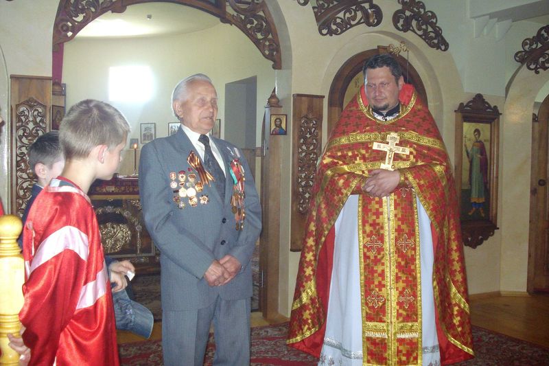 10 ìàÿ 2015ã. ïðèõîæàíå íàøåãî õðàìà âìåñòå ñ íàñòîÿòåëåì èåðååì Äèìèòðèåì Ëóêàøåâè÷åì ïîçäðàâèëè âåòåðàíà Âåëèêîé Îòå÷åñòâåííîé âîéíû Íèêîëàÿ ßêîâëåâè÷à Ñàõàð÷óêà ñ 70-ëåòèåì Âåëèêîé Ïîáåäû.  àäðåñ 88-ëåòíåãî âåòåðàíà ïðîçâó÷àëè ñëîâà áëàãîäàðíîñòè è ïðèçíàòåëüíîñòè, ïîæåëàíèÿ çäîðîâüÿ, áîäðîñòè äóõà è äîëãîëåòèÿ. Òàêæå Íèêîëàþ ßêîâëåâè÷ó áûëè âðó÷åíû ïîäàðêè è ãîñòèíöû ê ïðàçäíèêó.