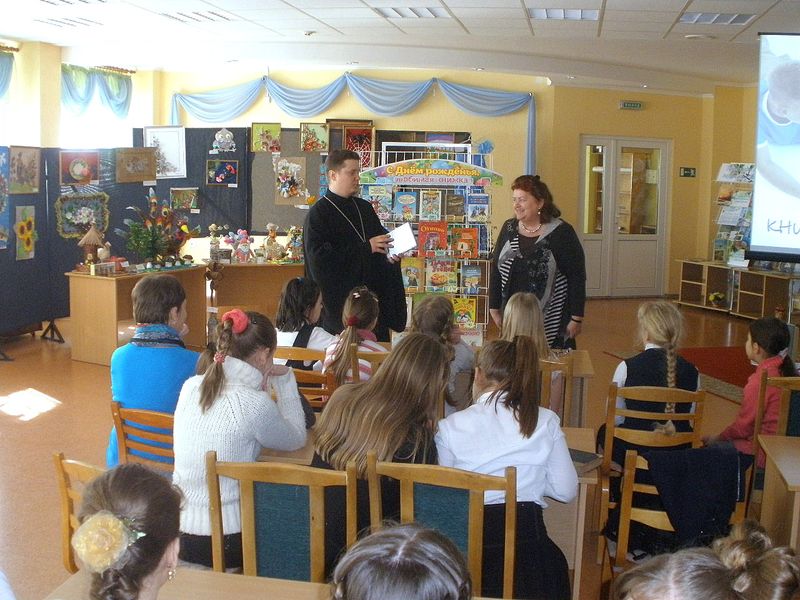 Ñìîãëè ïîäåðæàòü â ðóêàõ ïðèíåñ¸ííóþ î. Àëåêñèåì äðåâíþþ «Ïñàëòèðü», ïåðåïèñàííóþ îò ðóêè, è äðóãèå ñòàðèííûå áîãîñëóæåáíûå êíèãè. Óçíàëè î ïåðâîé ïå÷àòíîé íà Ðóñè êíèãå «Àïîñòîë», è î ïåðâîïå÷àòíèêå äèàêîíå Èâàíå Ô¸äîðîâå. Ñ èíòåðåñîì äåòè ñëóøàëè î òîì, ÷òî â çàâèñèìîñòè îò òîãî, êàêóþ êíèãó ÷åëîâåê äåðæèò â ðóêàõ, òàê îí è íà÷èíàåò ìûñëèòü, ó÷èòñÿ îòëè÷àòü õîðîøåå îò ïëîõîãî.