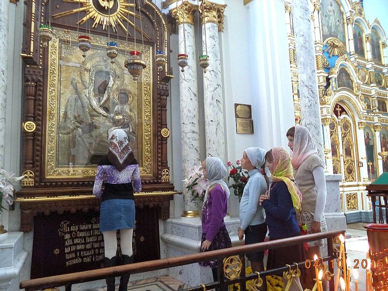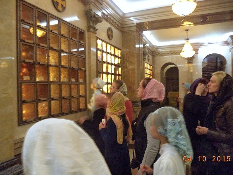 ìîíàñòûðü ìû ïðèáûëè êàê ðàç ê íà÷àëó Áîæåñòâåííîé ëèòóðãèè, êîòîðàÿ ñîâåðøàëàñü â õðàìå â ÷åñòü èêîíû Áîæèåé Ìàòåðè «Äåðæàâíàÿ». Âñåõ çàâîðîæèëî êðàñèâîå óáðàíñòâî õðàìà, óíèêàëüíàÿ ìîçàèêà âèçàíòèéñêîãî îáðàçöà íà ïîòîëêå, óäèâèòåëüíîå ïåíèå õîðà è ñàìà àòìîñôåðà, öàðèâøàÿ òàì. Âðåìÿ áóäòî îñòàíîâèëîñü…Ðàäóåò, ÷òî ñðåäè íàñ áûëè âçðîñëûå è äåòè, êîòîðûå ïðè÷àñòèëèñü çäåñü Ñâÿòûõ Õðèñòîâûõ Òàèí.