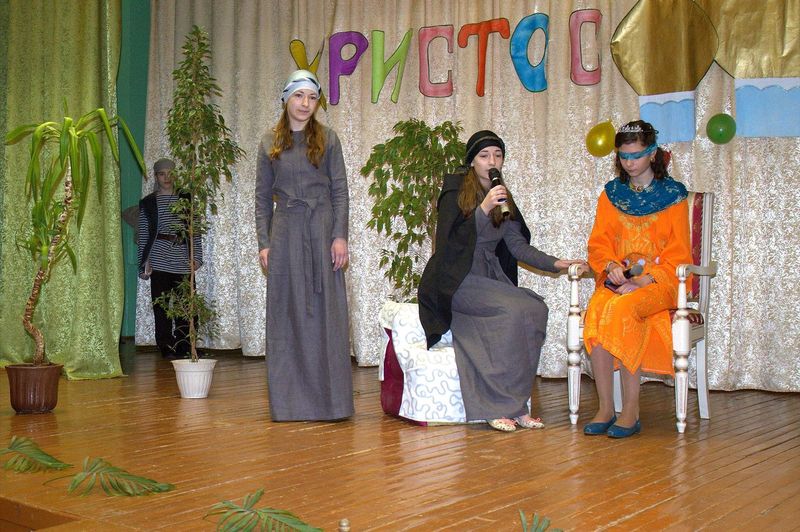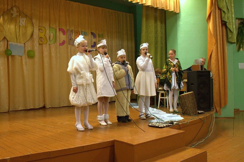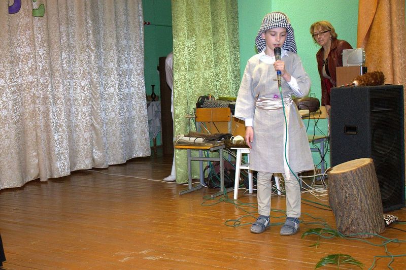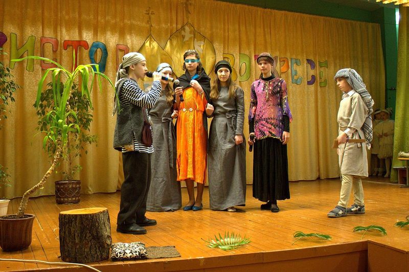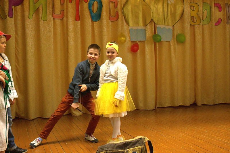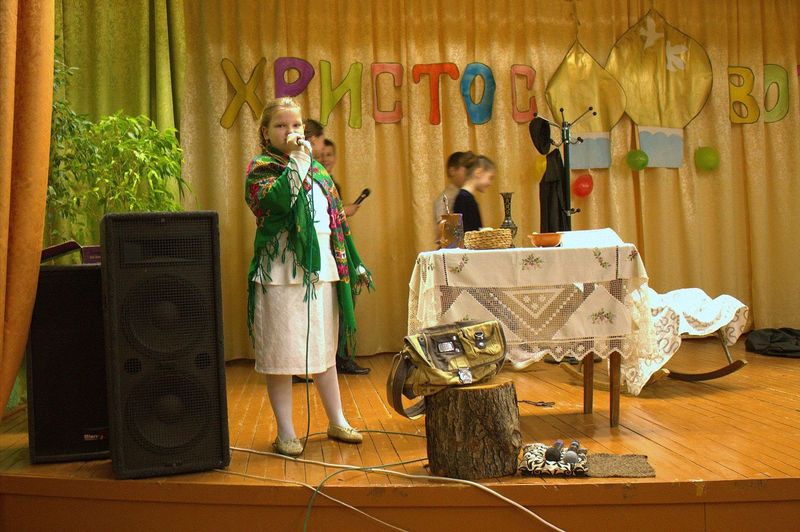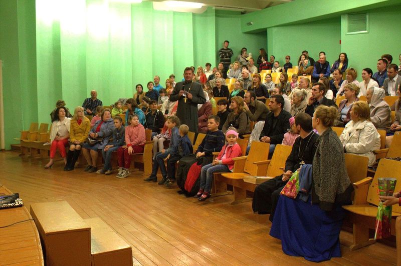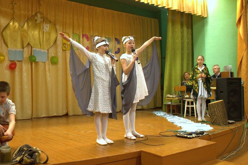 íà÷àëå çðèòåëåé ïîðàäîâàë äåòñêèé öåðêîâíûé õîð ïîä ðóêîâîäñòâîì Íàòàëüè Îëåñèê è Äàðüè Êóëèê. Îñîáåííî çàïîìíèëàñü ïàñõàëüíàÿ ïåñíÿ «Ëàñòî÷êè» è òðîïàðü Ïàñõè íà ðóññêîì è ãðå÷åñêîì ÿçûêàõ. Çàòåì âñå îòïðàâèëèñü â Èåðóñàëèì âðåì¸í Èèñóñà Õðèñòà. Ó÷åíèêè 4 êëàññà ïîêàçàëè íàïîëíåííûé ãëóáîêèì ñìûñëîì ñïåêòàêëü «Ñëåïàÿ ïðèíöåññà Ôàâñòà è Èèñóñ Õðèñòîñ», ïî ñþæåòó èåðîìîíàõà Çèíîíà. Äàëåå íà÷àëàñü ìóçûêàëüíàÿ ñêàçêà «Ìàìà è Ïå÷àëü-Òîñêà». Ïåðñîíàæè ñìåíÿëè äðóã äðóãà, òàíöû ÷åðåäîâàëèñü ñ ðàçíîîáðàçíûìè ïåñíÿìè. Ãëàâíûå ãåðîè, áðàò è ñåñòðà, êîòîðûõ èãðàëè Ãëåá Öâåòêîâ è Ïîëèíà Äàöêåâè÷, â ïóòè ïîçíàëè èñòèíó – Ãîñïîäü âñåãäà ñ íàìè è âñåãäà ãîòîâ îòêëèêíóòüñÿ íà íàøè èñêðåííèå ìîëèòâû. Òîðæåñòâåííûìè âîçãëàñàìè «Õðèñòîñ Âîñêðåñå» - «Âîèñòèíó Âîñêðåñå», íàïîëíèëñÿ çàë â êîíöå ïðåäñòàâëåíèÿ. Âñå àðòèñòû âûøëè íà ñöåíó è èñïîëíèëè ôèíàëüíóþ ïåñíþ.