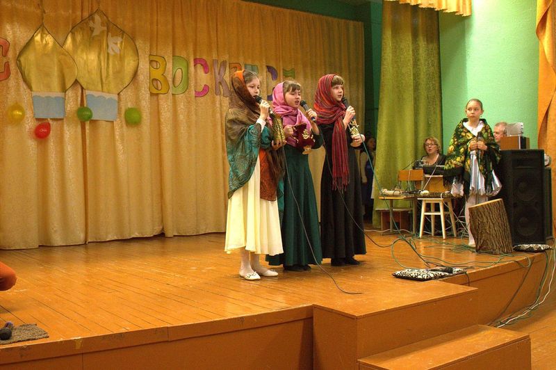 Õðèñòîñ Âîñêðåñå! Âîò è íàñòàë ñâåòëûé ïðàçäíèê Õðèñòîâà Âîñêðåñåíèÿ! Ó÷åíèêè Âîñêðåñíîé øêîëû íàøåãî ïðèõîäà ñ íåòåðïåíèåì æäàëè ýòîãî ïðàçäíèêà. Áîëåå 50 ðåáÿò â ïîäãîòîâêå ê Ïàñõàëüíîìó óòðåííèêó ïðîâåëè íåñêîëüêî ìåñÿöåâ, ðîäèòåëè øèëè êîñòþìû, ïîìîãàëè ãîòîâèòü äåêîðàöèè: Åëåíà Öâåòêîâà çàíèìàëàñü ïîäãîòîâêîé òàíöåâàëüíûõ íîìåðîâ è ðåïåòèöèîííûì ïðîöåññîì; Íàäåæäà Ãàíçååâà âåëà ïðîãðàììó â îáðàçå ïðåêðàñíîé Âåñíû; Íàòàëüÿ Äåíèñþê è Åëåíà ßí÷óê ïîìîãàëè çà êóëèñàìè. È òàê, â îáùåì âäîõíîâåííîì ïîðûâå, ñ Áîæèåé ïîìîùüþ, 26 àïðåëÿ 2015 ã. â àêòîâîì çàëå ÑØ ¹33, íàêîíåö, ñîñòîÿëñÿ ïðàçäíèê!