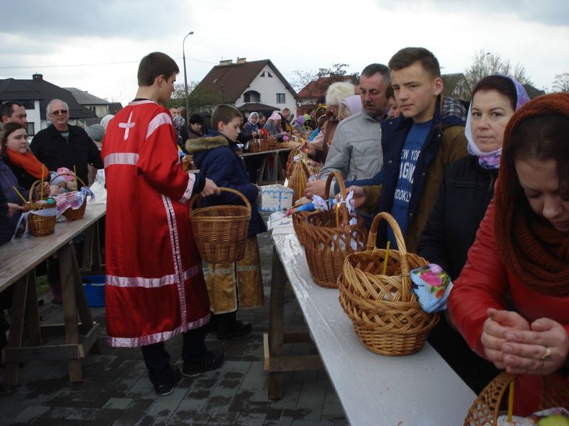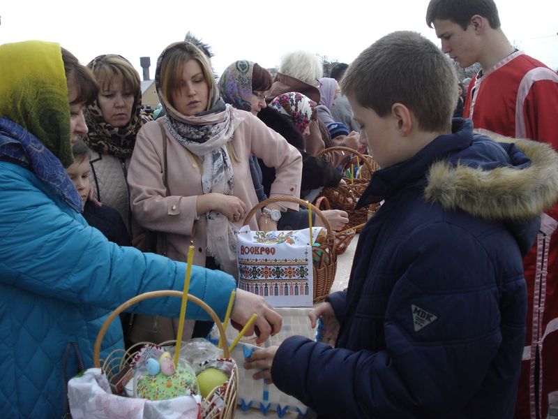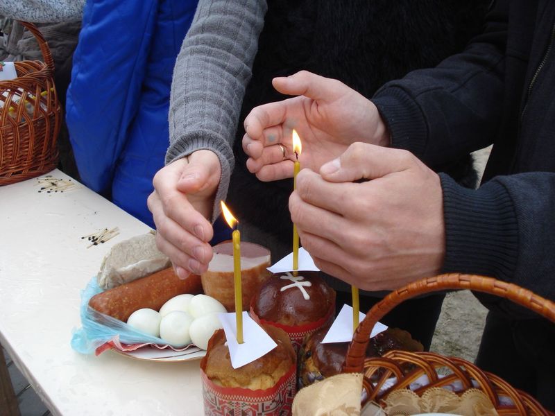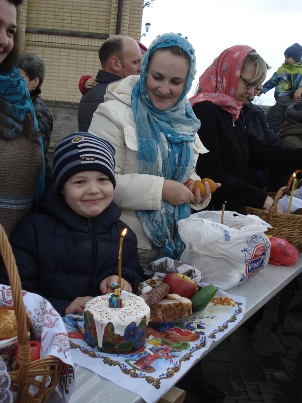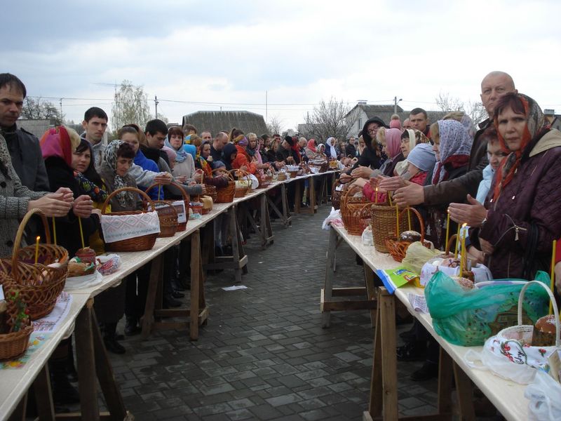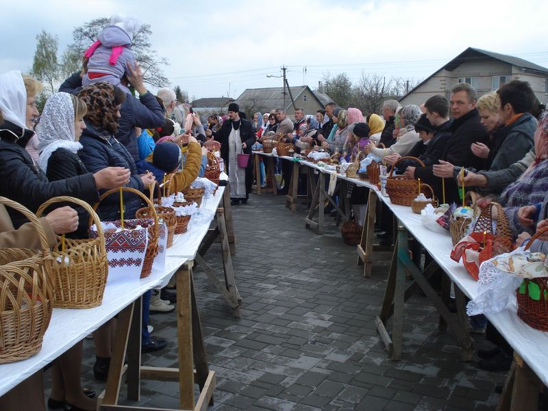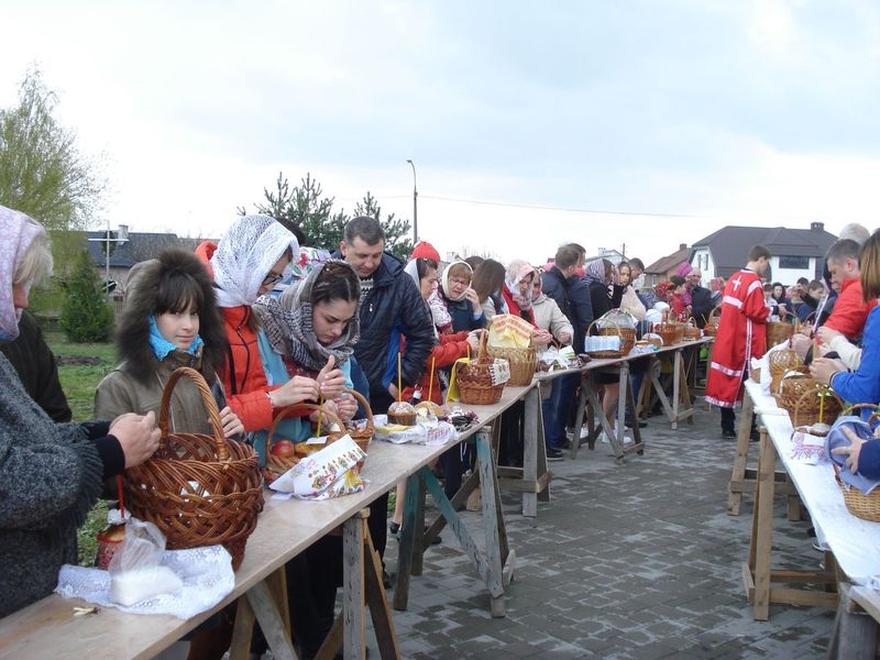 Âî âñåõ ïðàâîñëàâíûõ õðàìàõ, íàêàíóíå ïðàçäíèêà Ïàñõè, îñâÿùàþò òðàäèöèîííûå ïàñõàëüíûå ÿñòâà: òâîðîæíûå ïàñõè, êðàøåíûå ÿéöà, êóëè÷è.  Âåëèêóþ ñóááîòó, â ïðåääâåðèè ïðàçäíèêà Ñâåòëîãî Õðèñòîâà Âîñêðåñåíèÿ, è â íàøåì õðàìå ñîñòîÿëîñü îñâÿùåíèå êóëè÷åé.