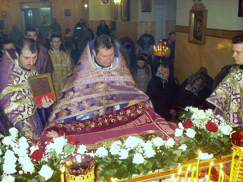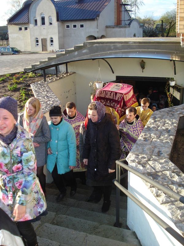 14 àïðåëÿ 2017 ãîäà, â Âåëèêóþ Ïÿòíèöó, íàñòîÿòåëü íàøåãî ïðèõîäà, èåðåé Äèìèòðèé Ëóêàøåâè÷, âìåñòå ñ êëèðîì è ïàñòâîé, ñîâåðøèë âå÷åðíþ ñ âûíîñîì Ïëàùàíèöû, è óòðåíþ ñ ÷èíîì ïîãðåáåíèÿ Ãîñïîäà íàøåãî Èèñóñà Õðèñòà.Ïîñëå Âåëèêîãî ñëàâîñëîâèÿ, äóõîâåíñòâî è ïðèõîæàíå, ñîâåðøèëè êðåñòíûé õîä âîêðóã ñòðîÿùåãîñÿ õðàìà â ÷åñòü èêîíû Áîæèåé Ìàòåðè «Âñåõ Ñêîðáÿùèõ Ðàäîñòü».