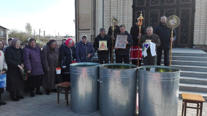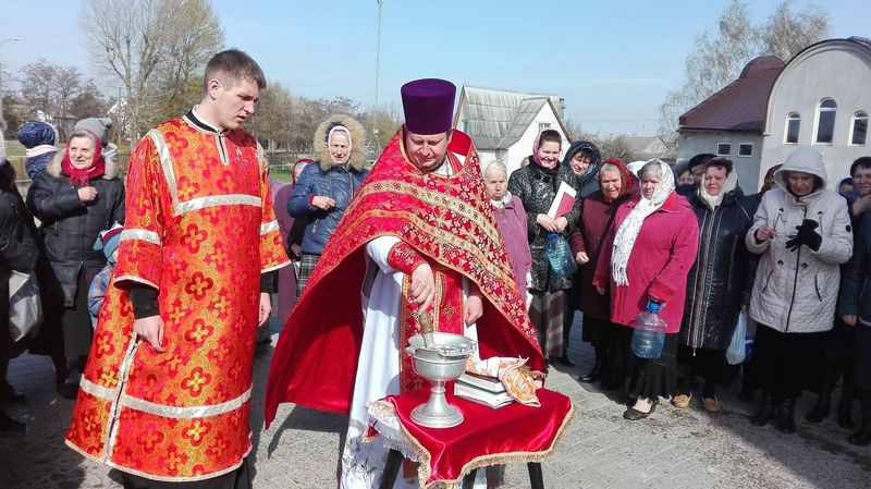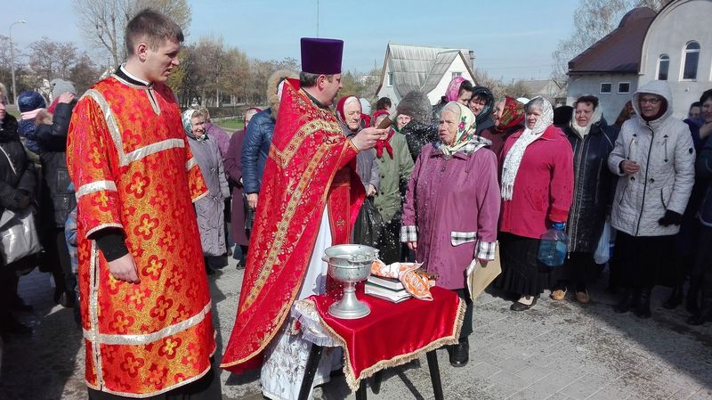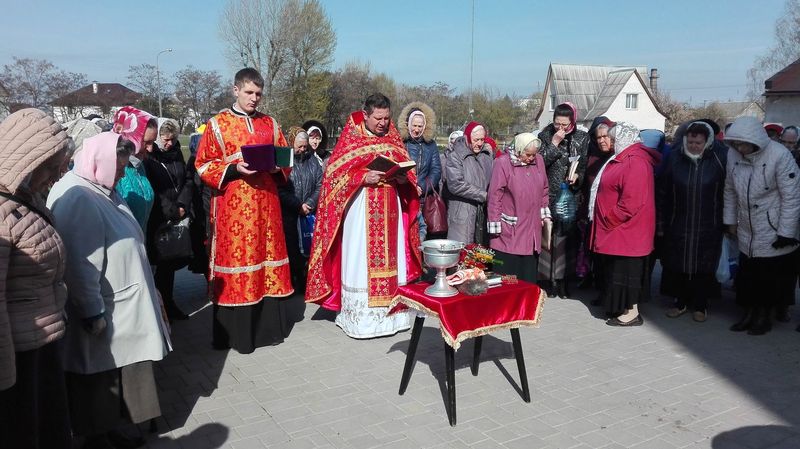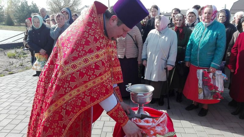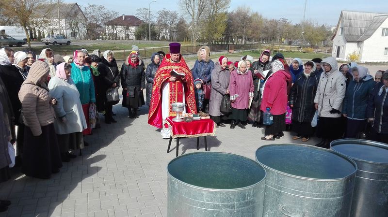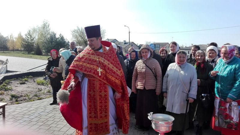 ïÿòíèöó Ñâåòëîé ñåäìèöû, 21 àïðåëÿ, ïî îêîí÷àíèè Áîæåñòâåííîé ëèòóðãèè è ïàñõàëüíîãî êðåñòíîãî õîäà, íàñòîÿòåëü õðàìà èåðåé Äèìèòðèé Ëóêàøåâè÷ è êëèðèê õðàìà èåðåé Àëåêñèé Òèòîâ, ïî òðàäèöèè, ñîâåðøèëè âîäîñâÿòíûé ìîëåáåí â ÷åñòü Ïðåñâÿòîé Áîãîðîäèöû è Ÿ èêîíû «Æèâîíîñíûé Èñòî÷íèê».