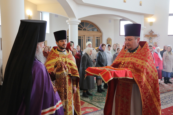 2 àïðåëÿ 2018 ãîäà, â ×åòâåðã Ñâåòëîé Ñåäìèöû, Åãî Âûñîêîïðåîñâÿùåíñòâî Âûñîêîïðåîñâÿùåííåéøèé Èîàíí, Àðõèåïèñêîï Áðåñòñêèé è Êîáðèíñêèé, ñîâåðøèë Áîæåñòâåííóþ ëèòóðãèþ â íàøåì õðàìå â ÷åñòü èêîíû Áîæèåé Ìàòåðè «Âñåõ ñêîðáÿùèõ Ðàäîñòü». Çà áîãîñëóæåíèåì Åãî Âûñîêîïðåîñâÿùåíñòâó ñîñëóæèëè: ñåêðåòàðü Áðåñòñêîãî Åïàðõèàëüíîãî óïðàâëåíèÿ ïðîòîèåðåé Ïåòð Ðîìàíîâè÷, íàñòîÿòåëü õðàìà ïðîòîèåðåé Äèìèòðèé Ëóêàøåâè÷ è äóõîâåíñòâî õðàìà. Äèàêîíñêèé ÷èí âîçãëàâèë ïðîòîäèàêîí êàôåäðàëüíîãî ñîáîðà ïðåïîäîáíîãî Ñèìåîíà Ñòîëïíèêà ãîðîäà Áðåñòà Àëåêñèé Ñåìåíþê.