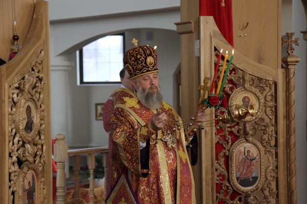 Ïîñëå Áîæåñòâåííîé ëèòóðãèè Àðõèïàñòûðü ñîâìåñòíî ñ äóõîâåíñòâîì ñîâåðøèë òîðæåñòâåííûé Êðåñòíûé õîä ïîä ïåíèå ñòèõèð Ñâÿòîé Ïàñõè, çàòåì âñå âåðóþùèå áûëè îêðîïëåíû ñâÿòîé âîäîé.