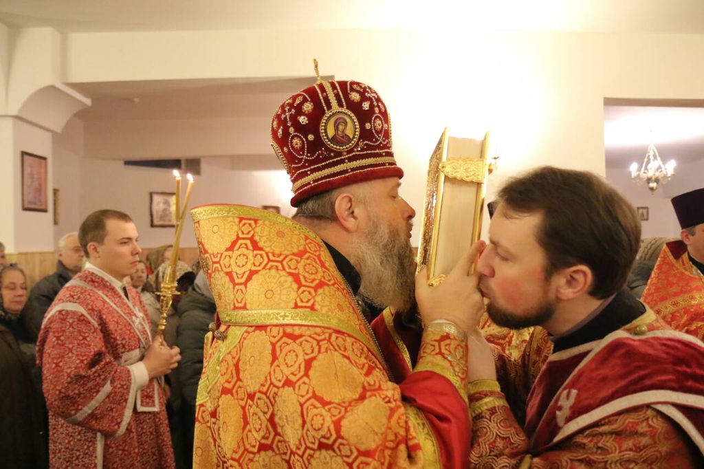 Ïî îêîí÷àíèè Ëèòóðãèè áûë ñîâåðø¸í êðåñòíûé õîä è ïðàçäíè÷íûé ìîëåáåí, ãäå Åãî Âûñîêîïðåîñâÿùåíñòâî ñ äóõîâåíñòâîì ïîìîëèëèñü ñâÿòîìó ìó÷åíèêó Âîíèôàòèþ, êîòîðîìó äàíà îò Ãîñïîäà îñîáàÿ áëàãîäàòü èñöåëÿòü âñåõ ñòðàæäóùèõ íåäóãîì ïüÿíñòâà, à òàêæå ïðîñëàâèëè Âñåâûøíåãî çà åù¸ îäèí ïðîøåäøèé ãîä, èñïðîñèâ Åãî ìèëîñòè è áëàãîñëîâåíèÿ.  ñâî¸ì ñëîâå Âëàäûêà ïîçäðàâèë âñåõ ïðèñóòñòâóþùèõ ñ ïðåñòîëüíûì ïðàçäíèêîì è íàñòóïèâøèì Íîâîëåòèåì ïî ãðàæäàíñêîìó êàëåíäàðþ, ïðèçâàâ íà âñåõ áëàãîñëîâåíèå Áîæèå. Íàñòîÿòåëü õðàìà î. Äèìèòðèé, â ñâîþ î÷åðåäü, ïîáëàãîäàðèë Åãî Âûñîêîïðåîñâÿùåíñòâî çà ñîâåðø¸ííûé âèçèò è ìîëèòâû.
