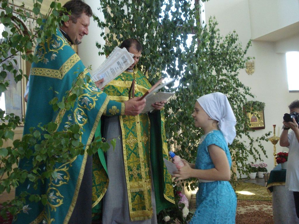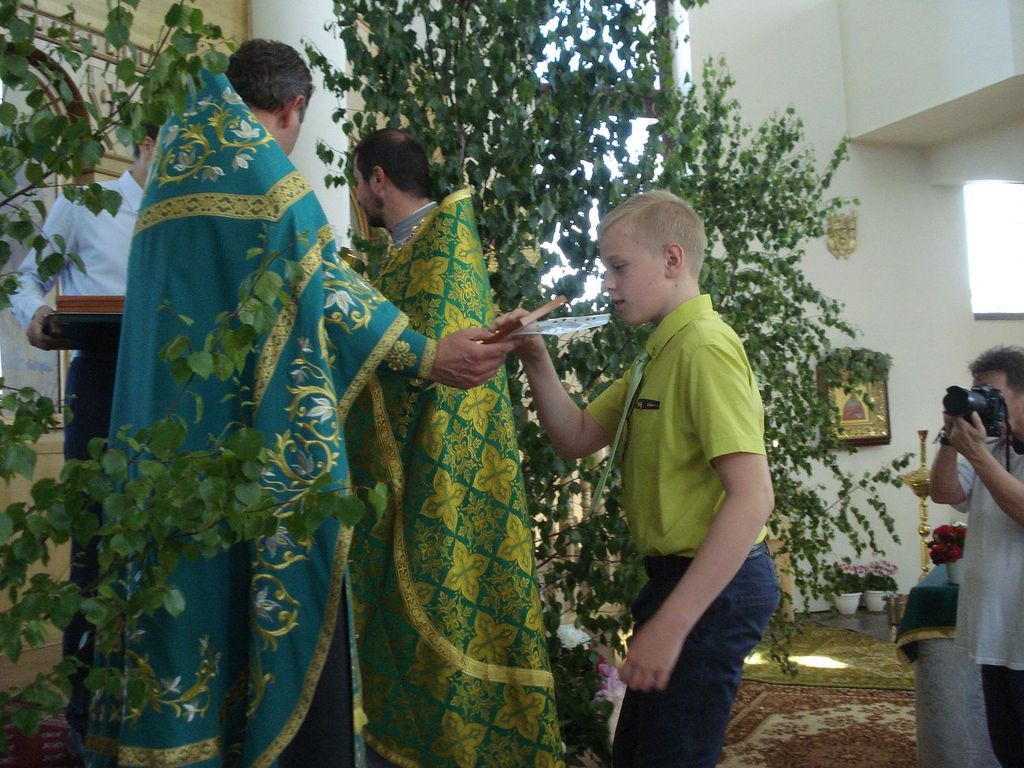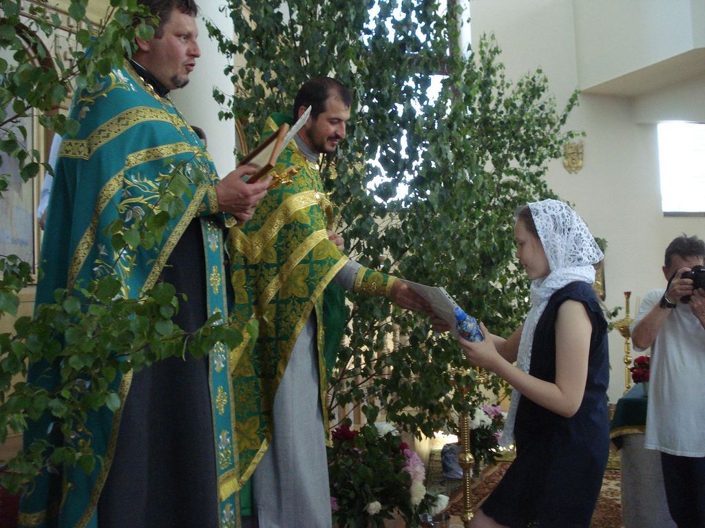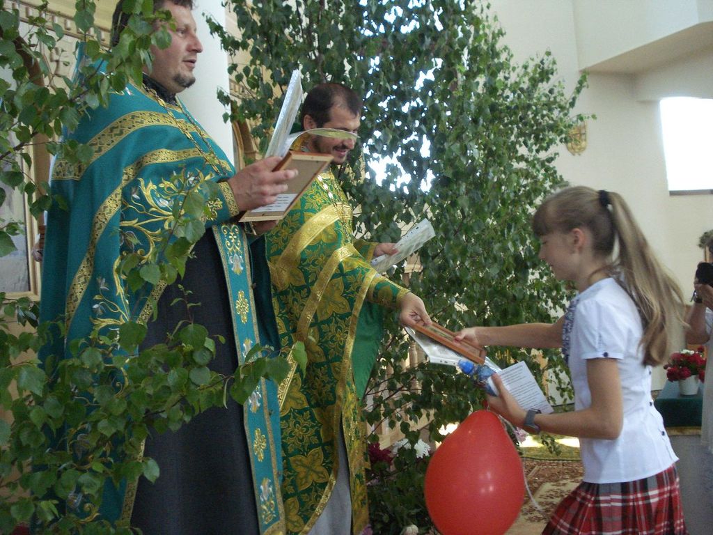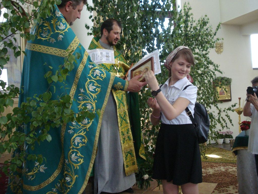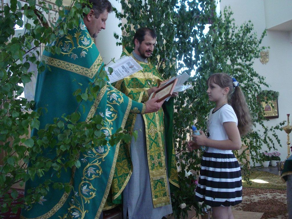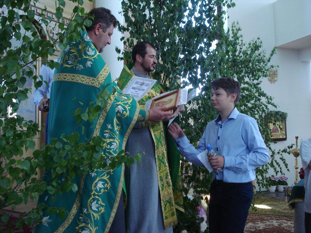 27 ìàÿ, êîãäà Öåðêîâü ïðàçäíóåò Äåíü Ñâÿòîé Òðîèöû, â íàøåì ïðèõîäå ñîñòîÿëñÿ î÷åðåäíîé âûïóñê ó÷àùèõñÿ ïðèõîäñêîé Âîñêðåñíîé øêîëû. Íàñòîÿòåëåì õðàìà ïðîòîèåðååì Äèìèòðèåì Ëóêàøåâè÷åì è êëèðèêîì èåðååì Ìèõàèëîì Äåðêà÷¸ì áûë îòñëóæåí áëàãîäàðñòâåííûé ìîëåáåí íà îêîí÷àíèå ó÷åáíîãî ãîäà. Ïî îêîí÷àíèè ìîëåáíà î. Äèìèòðèé ñêàçàë âûïóñêíèêàì íàïóòñòâåííîå ñëîâî, ïîæåëàë ðåáÿòàì, ÷òîáû âñå ïîëó÷åííûå çíàíèÿ îíè ðåàëèçîâàëè â æèçíè, â öåðêâè, â ñâîèõ ñåìüÿõ, â îáùåñòâå. Áàòþøêà ïîáëàãîäàðèë äåòåé è ðîäèòåëåé çà ïðèëîæåííûå òðóä è òåðïåíèå â èçó÷åíèè Çàêîíà Áîæüåãî. Âñåì âûïóñêíèêàì áûëè âðó÷åíû Ñâèäåòåëüñòâà îá îêîí÷àíèè Âîñêðåñíîé øêîëû è èêîíà Áîæèåé Ìàòåðè íà ìîëèòâåííóþ ïàìÿòü.