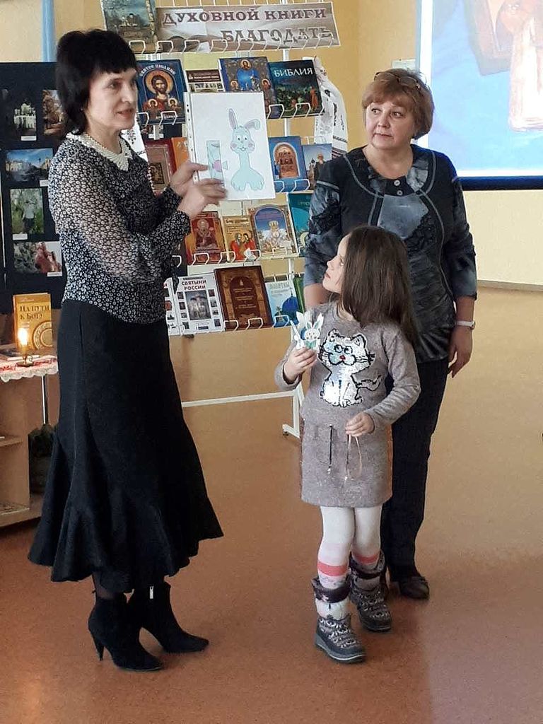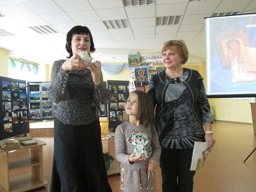 Ïðåïîäàâàòåëü Âîñêðåñíîé øêîëû ïðè õðàìå Ãàëèíà Çèãìóíäîâíà Ìàñþê ïðî÷ëà äåòÿì çàìå÷àòåëüíûå ñòèõîòâîðåíèÿ î çíà÷åíèè êíèãè â æèçíè ëþäåé, à òàêæå ïðîâåëà ìàñòåð-êëàññ ïî èçãîòîâëåíèþ ïàñõàëüíûõ ïîäåëîê.