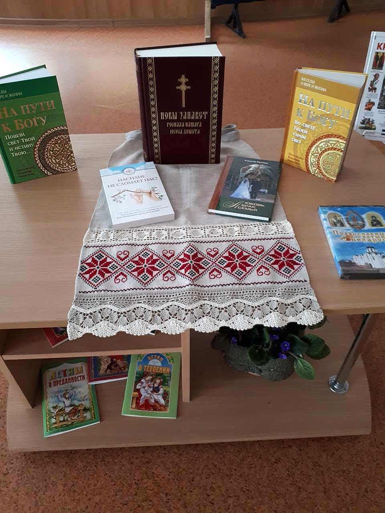 Ê ýòîé âñòðå÷å áûëà ïîäãîòîâëåíà âûñòàâêà «Äóõîâíîé êíèãè áëàãîäàòü», íà êîòîðîé áûëè ïðåäñòàâëåíû êíèãè ïðàâîñëàâíîé òåìàòèêè äëÿ äåòåé. Äåòè èìåëè âîçìîæíîñòü ïîäîéòè è ïîäðîáíî ðàññìîòðåòü âñå êíèãè.