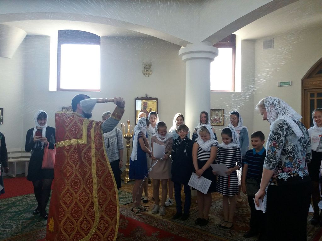 Íà ìîëåáåí ñîáðàëîñü ìíîãî äåòåé è èõ ðîäèòåëåé. Âñå áûëè â ïðèïîäíÿòîì, ðàäîñòíîì íàñòðîåíèè - âïåðåäè ËÅÒÎ!!! Ïî îêîí÷àíèè ìîëåáíà î. Ìèõàèë ùåäðî îêðîïèë âñåõ ñâÿòîé âîäîé. Îò áàòþøåê ïðîçâó÷àëè ñëîâà íàïóòñòâèÿ âûïóñêíèêàì, ïîçäðàâëåíèÿ âñåì ó÷àùèìñÿ è áëàãîäàðíîñòè ðîäèòåëÿì, êîòîðûå íå ëåíÿòñÿ ïðèâåñòè ñâîèõ äåòåé â Âîñêðåñíóþ øêîëó. Çàòåì êàæäûé âûïóñêíèê ïîëó÷èë èç ðóê íàñòîÿòåëÿ ñâèäåòåëüñòâî îá îêîí÷àíèè Âîñêðåñíîé øêîëû è ïàìÿòíûé ïîäàðîê - ïîó÷èòåëüíóþ õóäîæåñòâåííóþ êíèãó ïðàâîñëàâíîãî àâòîðà. À ïåäàãîã âûïóñêíîãî êëàññà Åëåíà Àëåêñàíäðîâíà Ãëàçêî ïîäàðèëà êàæäîìó ñâîåìó âîñïèòàííèêó ôîòîêîëëàæ íà äîáðóþ ïàìÿòü.