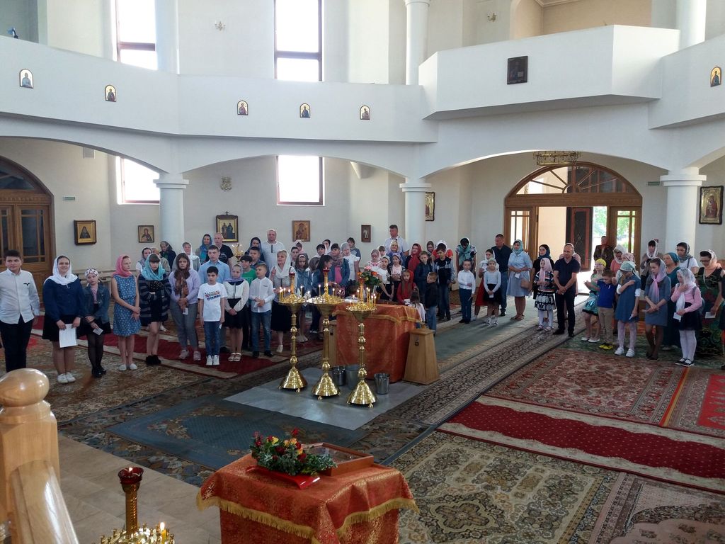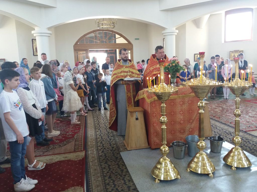 Âå÷åðîì 2 èþíÿ 2019 ã. â íàøåì õðàìå ñîñòîÿëñÿ áëàãîäàðñòâåííûé ìîëåáåí ïî ñëó÷àþ îêîí÷àíèÿ ó÷åáíîãî ãîäà â Âîñêðåñíîé øêîëå. Îòñëóæèëè åãî íàñòîÿòåëü õðàìà ïðîòîèåðåé Äèìèòðèé Ëóêàøåâè÷ è äèðåêòîð Âîñêðåñíîé øêîëû èåðåé Ìèõàèë Äåðêà÷. Ïîìîãàë èì â ñëóæåíèè äåòñêèé ïðèõîäñêîé õîð, ñîñòîÿùèé èç ó÷åíèêîâ è âûïóñêíèêîâ íàøåé Âîñêðåñêè.