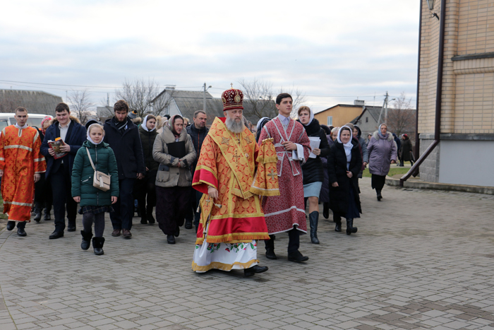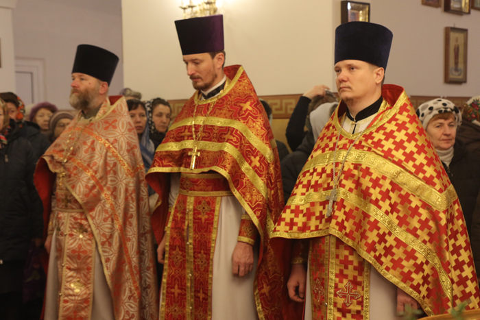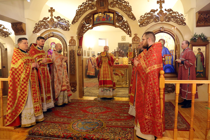 Íà ñóãóáîé åêòåíèè Àðõèåïèñêîï Èîàíí âîçí¸ñ êî Ãîñïîäó ìîëèòâó î ìèðå íà Óêðàèíå. Ïî çàâåðøåíèè Áîæåñòâåííîé ëèòóðãèè áûë ñîâåðø¸í Êðåñòíûé õîä âîêðóã õðàìà, ïîñëå ÷åãî âñå âåðóþùèå áûëè îêðîïëåíû ñâÿòîé âîäîé. Çàòåì Àðõèåïèñêîï Èîàíí âîçí¸ñ áëàãîäàðåíèå Áîãó î íàñòóïëåíèè Íîâîëåòèÿ, è ïðî÷èòàë ìîëèòâó ñâÿòîìó ìó÷åíèêó Âîíèôàòèþ. Åãî Âûñîêîïðåîñâÿùåíñòâî ñåðäå÷íî ïðèâåòñòâîâàë äóõîâåíñòâî, íàñòîÿòåëÿ è ïðèõîæàí õðàìà ñ ïðåñòîëüíûì ïðàçäíèêîì, ñêàçàâ ïðîïîâåäü íà òåìó æèòèÿ ñâÿòîãî ìó÷åíèêà Âîíèôàòèÿ.