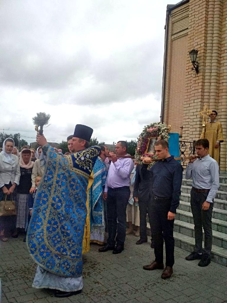 5 àâãóñòà, 2020 ãîäà, íàø ïðèõîä îòìå÷àë ñâîé ïðåñòîëüíûé ïðàçäíèê â ÷åñòü èêîíû Áîæèåé Ìàòåðè «Âñåõ Ñêîðáÿùèõ Ðàäîñòü». Íàêàíóíå âå÷åðîì áûëî ñîâåðøåíî ïðàçäíè÷íîå Âñåíîùíîå áäåíèå. Ðàíî óòðîì, 5 àâãóñòà, èåðåé Àëåêñèé Òèòîâ ñîâåðøèë âîäîñâÿòíûé ìîëåáåí. Çàòåì, ïðè ìíîãî÷èñëåííîì ñòå÷åíèè ìîëÿùèõñÿ, ñîñòîÿëàñü Áîæåñòâåííàÿ ëèòóðãèÿ, âîçãëàâëÿåìàÿ íàñòîÿòåëåì õðàìà ïðîòîèåðååì Äèìèòðèåì Ëóêàøåâè÷åì, â ñîñëóæåíèè äóõîâåíñòâà ïðèõîäà. Ïî îêîí÷àíèè ëèòóðãèè áûë ñîâåðø¸í ïðàçäíè÷íûé êðåñòíûé õîä âîêðóã õðàìà ñ ÷òåíèåì Åâàíãåëèÿ, ïîñëå ÷åãî î. Äèìèòðèé îáðàòèëñÿ ê ìîëÿùèìñÿ ñî ñëîâàìè íàçèäàíèÿ, ïîçäðàâèë âñåõ ñ ïðåñòîëüíûì ïðàçäíèêîì, è ïîæåëàë ïðåäñòàòåëüñòâà Áîæèåé Ìàòåðè. Äëÿ ãîñòåé ïðèõîäà ïîñëå ñëóæáû áûëî ïðèãîòîâëåíî óãîùåíèå.