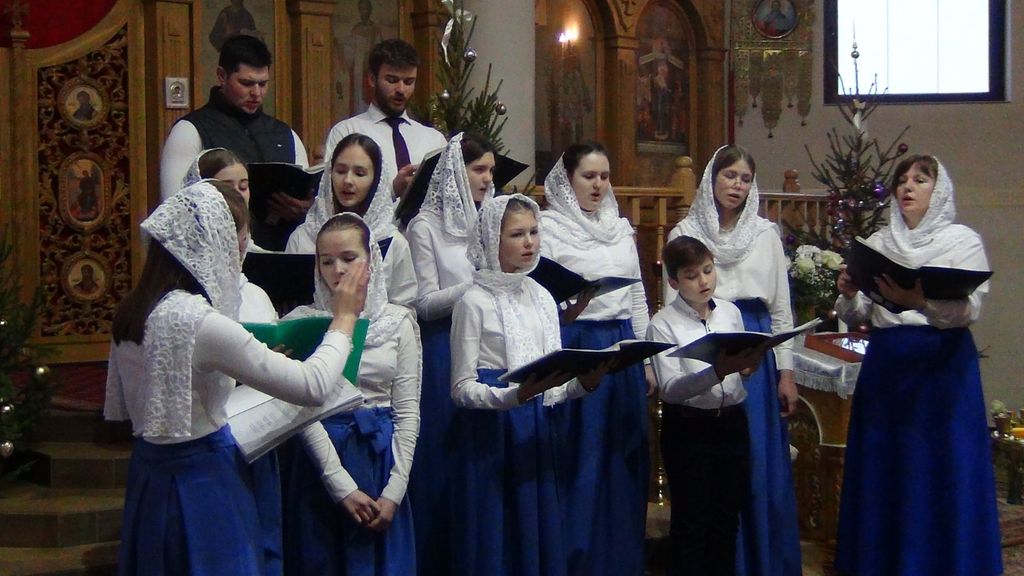 Âïåðâûå ïîêàçàëè, ÷åìó íàó÷èëèñü, ñàìûå ìàëåíüêèå õîðèñòû. Îíè èñïîëíèëè ÷åòûðå Êîëÿäêè, ñðåäè êîòîðûõ ñàìàÿ èçâåñòíàÿ è ñàìàÿ ëþáàÿ äåòüìè - "Ðîæäåñòâî Õðèñòîâî, àíãåë ïðèëåòåë". Ñâî¸ âûñòóïëåíèå äåòè çàâåðøèëè çàìå÷àòåëüíûìè ñëîâàìè: "Ñ íàìè Áîã, ðàçóìåéòå ÿçûöû è ïîêàðÿéòåñÿ. ßêî ñ íàìè Áîã!"
