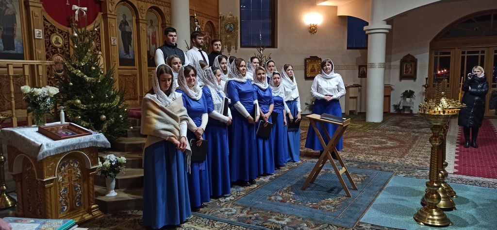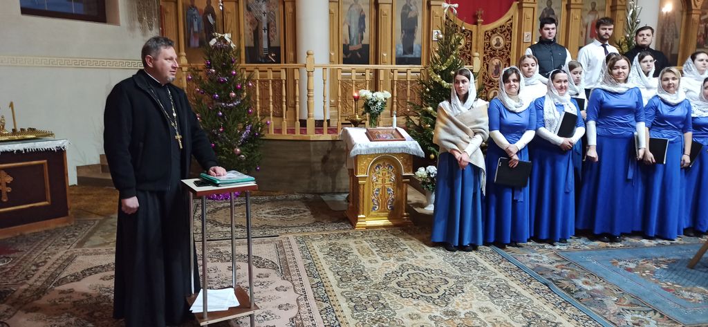 Ïîðàäîâàë ïðèõîæàí ñâîèìè Êîëÿäêàìè è áîëüøîé õîð íàøåãî ïðèõîäà.  åãî èñïîëíåíèè ïðîçâó÷àëè òàêèå ïåñíîïåíèÿ, êàê "Äîáðûé âý÷èð", "Äçâîíû" è ìíîãèå äðóãèå óæå ïîëþáèâøèåñÿ è õîðèñòàìè è ñëóøàòåëÿìè ïðîèçâåäåíèÿ. Îòðàäíî, ÷òî ê õîðèñòàì ïðèñîåäèíèëñÿ è íàø äèàêîí îòåö Àëåêñàíäð.  åãî èñïîëíåíèè ïðîçâó÷àëà Êîëûáåëüíàÿ " òýìíåíüêóþ íè÷êó".