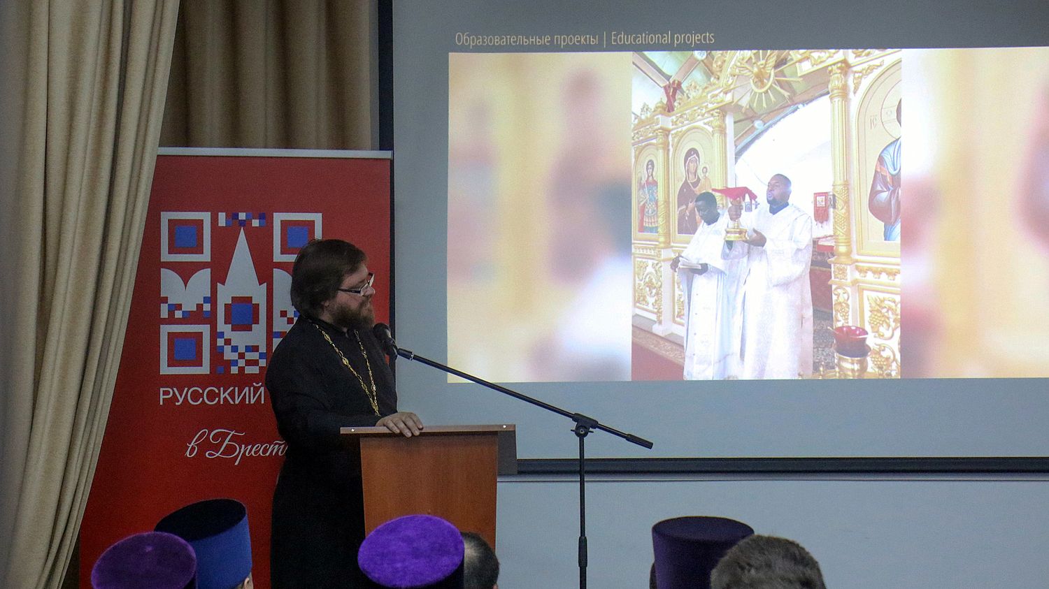 04 îêòÿáðÿ 2023 ãîäà â Ðîññèéñêîì öåíòðå íàóêè è êóëüòóðû â Áðåñòå, ñîñòîÿëàñü ëåêöèÿ çàìåñòèòåëÿ ïðåäñåäàòåëÿ Ñèíîäàëüíîãî ìèññèîíåðñêîãî îòäåëà Ðóññêîé Ïðàâîñëàâíîé Öåðêâè ïî âíåøíåé ìèññèè íà òåìó: «Âíåøíÿÿ ìèññèÿ Ðóññêîé Ïðàâîñëàâíîé Öåðêâè íà ñîâðåìåííîì ýòàïå». Îòêðûòàÿ ëåêöèÿ áûëà ïðî÷èòàíà äëÿ äóõîâåíñòâà ã. Áðåñòà, îòâåòñòâåííûõ çà ìèññèîíåðñêóþ ðàáîòó â áëàãî÷èíèÿõ Áðåñòñêîé åïàðõèè, ÷ëåíîâ ñåñòðè÷åñòâ åïàðõèè è ïðèõîæàí õðàìîâ ã. Áðåñòà. Ó÷àñòèå â ìåðîïðèÿòèè ïðèíÿë êëèðèê íàøåãî õðàìà èåðåé Àëåêñèé Òèòîâ. Ëåêòîð îñâåòèë áëàãîòâîðèòåëüíóþ äåÿòåëüíîñòü Ðóññêîé Ïðàâîñëàâíîé Öåðêâè â Àôðèêå è Þãî-Âîñòî÷íîé Àçèè, îòìåòèâ, â ÷àñòíîñòè, ñëîæíîå ìàòåðèàëüíî-òåõíè÷åñêîå ïîëîæåíèå ïðèõîäîâ.  ïðåçåíòàöèè áûëè ïðîèëëþñòðèðîâàíû ìåñòíûå îñîáåííîñòè áîãîñëóæåíèÿ. Äîêëàä÷èê îòìåòèë áîëüøóþ ðåëèãèîçíîñòü æèòåëåé Êîðåéñêîãî ïîëóîñòðîâà. Çàòðîíóë òåìó Ïðàâîñëàâèÿ íà Ôèëèïïèíàõ. Òàêæå ïîäíèìàëèñü âîïðîñû ìåæðåëèãèîçíîãî è ìåæíàöèîíàëüíîãî îáùåíèÿ.