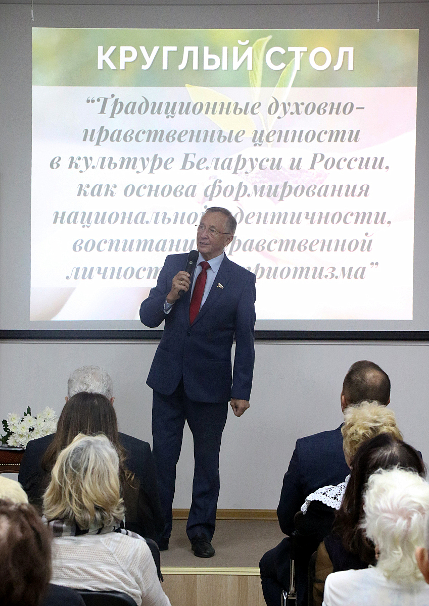Âî âòîðîé ïîëîâèíå äíÿ â Ðîññèéñêîì öåíòðå íàóêè è êóëüòóðû ã. Áðåñòà âûñòóïèë äåïóòàò Ãîñóäàðñòâåííîé Äóìû Ôåäåðàëüíîãî ñîáðàíèÿ Ðîññèéñêîé Ôåäåðàöèè, ïðåäñåäàòåëü Êîìèññèè Ïàðëàìåíòñêîãî Ñîáðàíèÿ ïî êóëüòóðå, íàóêå è îáðàçîâàíèþ Ñîþçíîãî Ãîñóäàðñòâà, íàðîäíûé àðòèñò Ðîññèéñêîé Ôåäåðàöèè Áóðëÿåâ Í. Ï. ñ ðàçìûøëåíèÿìè íà òåìó: «Òðàäèöèîííûå äóõîâíî-íðàâñòâåííûå öåííîñòè â êóëüòóðå Áåëàðóñè è Ðîññèè, êàê îñíîâà ôîðìèðîâàíèÿ íàöèîíàëüíîé èäåíòè÷íîñòè, âîñïèòàíèÿ íðàâñòâåííîé ëè÷íîñòè è ïàòðèîòèçìà». Èìåíèòûé ãîñòü îòìåòèë íåîáõîäèìîñòü ïàòðèîòè÷åñêîãî âîñïèòàíèÿ ìîëîäåæè. Áåðåæíîãî è ÷åñòíîãî îòíîøåíèÿ êî âñåì ïåðèîäàì èñòîðèè Îòå÷åñòâà.