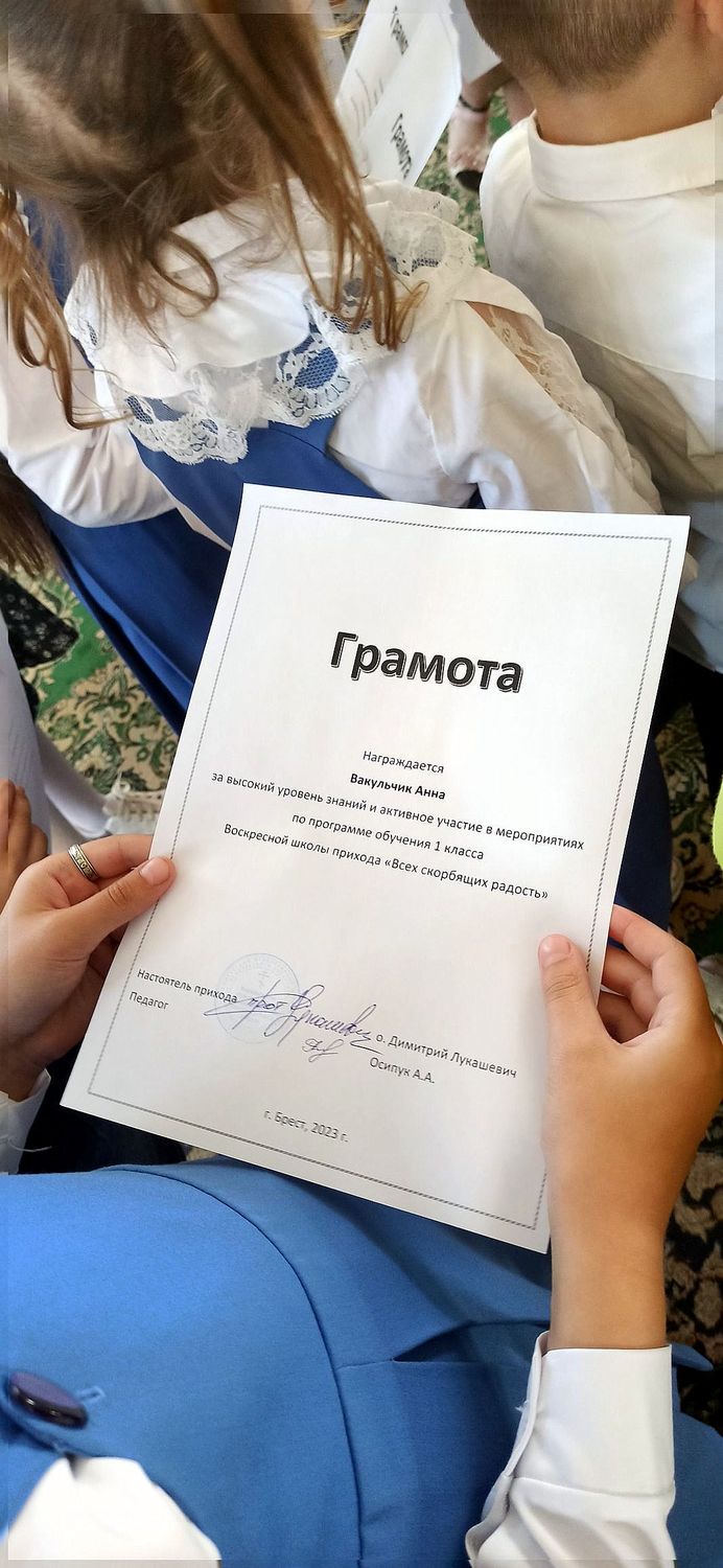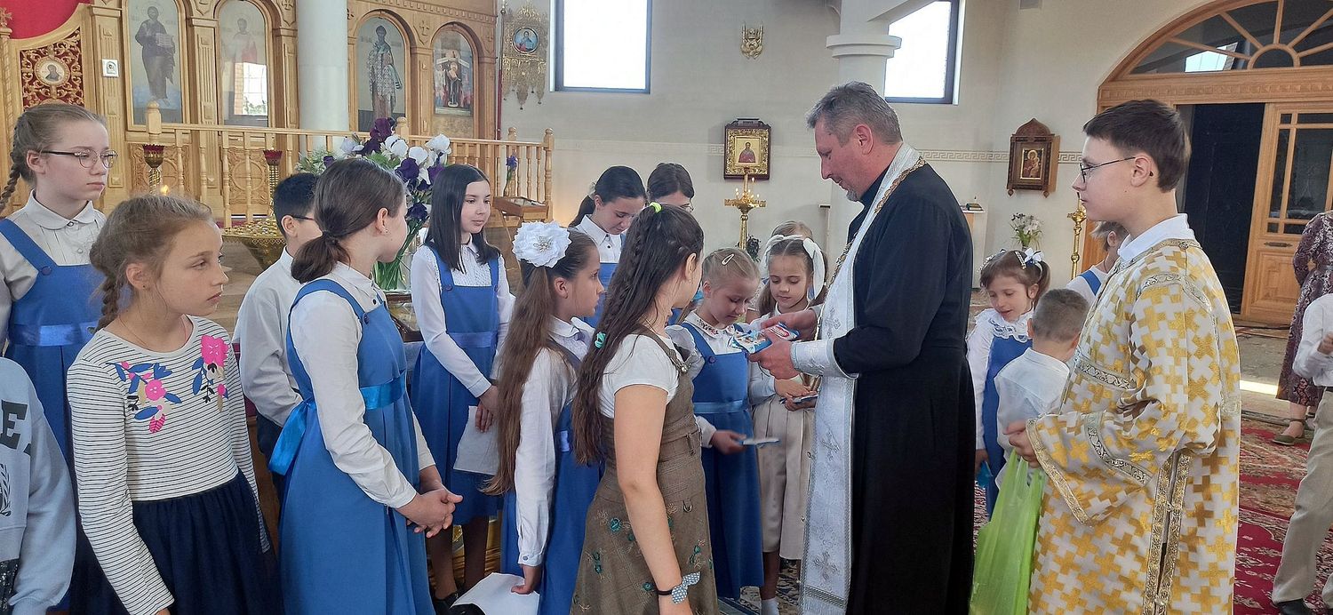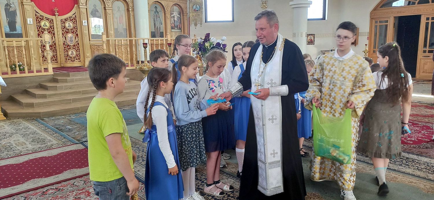 âîñêðåñåíüå, 28 ìàÿ, â íàøåì ïðèõîäå ïðîõîäèë òîðæåñòâåííûé àêò ïî ñëó÷àþ îêîí÷àíèÿ ó÷åáíîãî ãîäà â íàøåé Âîñêðåñíîé øêîëå. Âíà÷àëå áûë îòñëóæåí áëàãîäàðñòâåííûé ìîëåáåí, çàòåì íàñòîÿòåëü õðàìà ïðîòîèåðåé Äèìèòðèé Ëóêàøåâè÷ ñêàçàë ó÷åíèêàì íàïóòñòâåííîå ñëîâî, ïîæåëàë, ÷òîáû Ãîñïîäü ïîìîãàë èì ñîâåðøåíñòâîâàòüñÿ, ÷òîá âñå ïîëó÷àåìûå òåîðåòè÷åñêèå çíàíèÿ îíè ñòàðàëèñü ðåàëèçîâàòü â æèçíè, â öåðêâè, â îáùåñòâå. Íàñòîÿòåëü ïîáëàãîäàðèë òàêæå ïðåïîäàâàòåëåé Âîñêðåñíîé øêîëû è ðîäèòåëåé, âîñïèòûâàþùèõ ñâîèõ äåòåé â ïðàâîñëàâíîé âåðå.