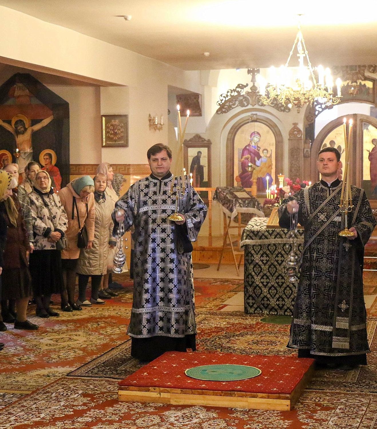 29 àïðåëÿ 2024 ãîäà, â ïîíåäåëüíèê Ñòðàñòíîé ñåäìèöû, àðõèåïèñêîï Áðåñòñêèé è Êîáðèíñêèé Èîàíí ñîâåðøèë Áîæåñòâåííóþ ëèòóðãèþ Ïðåæäåîñâÿùåííûõ Äàðîâ â íèæíåì Âîíèôàòüåâñêîì ïðèäåëå íàøåãî õðàìà â ÷åñòü èêîíû Áîæèåé Ìàòåðè «Âñåõ ñêîðáÿùèõ Ðàäîñòü».