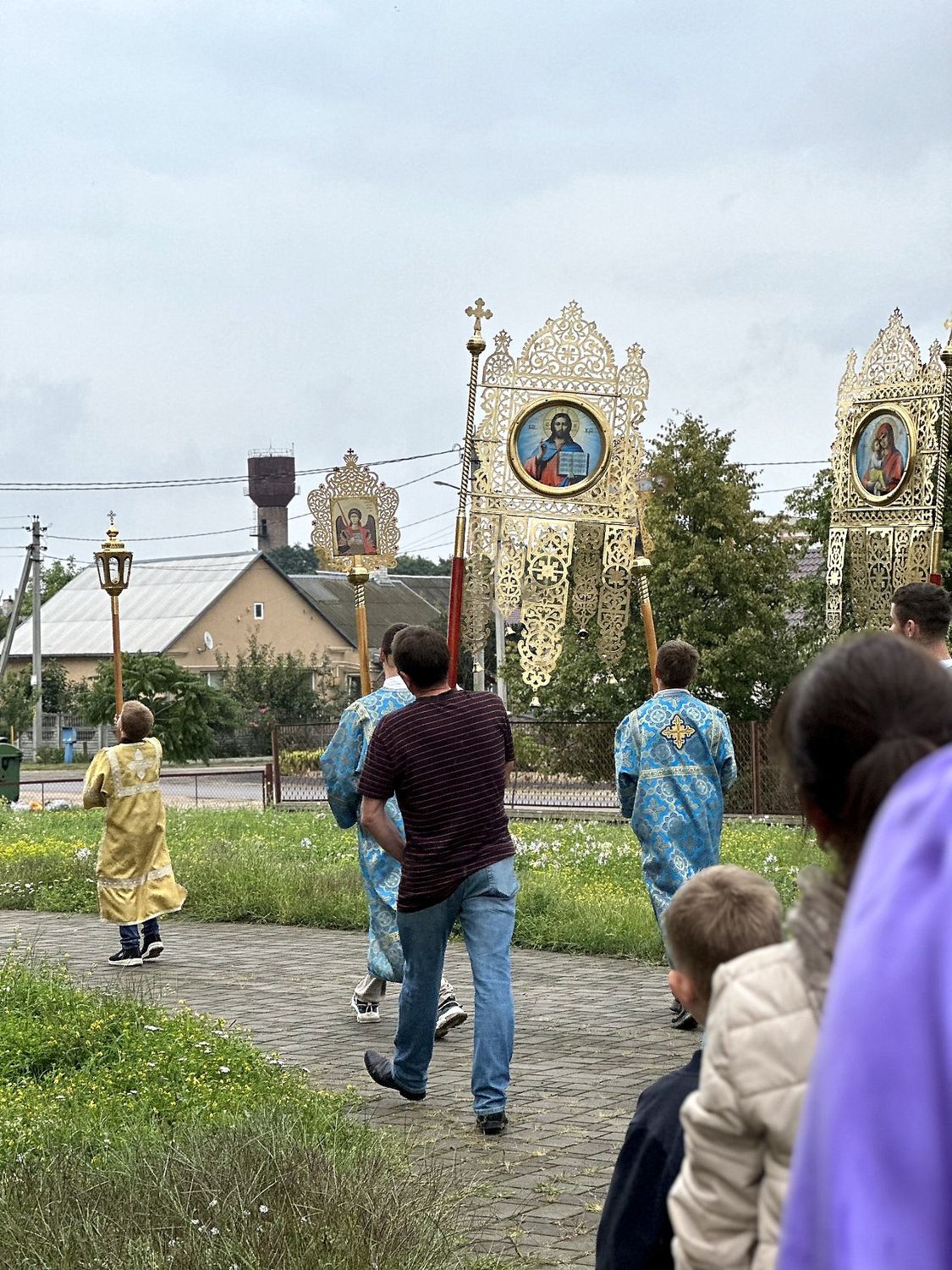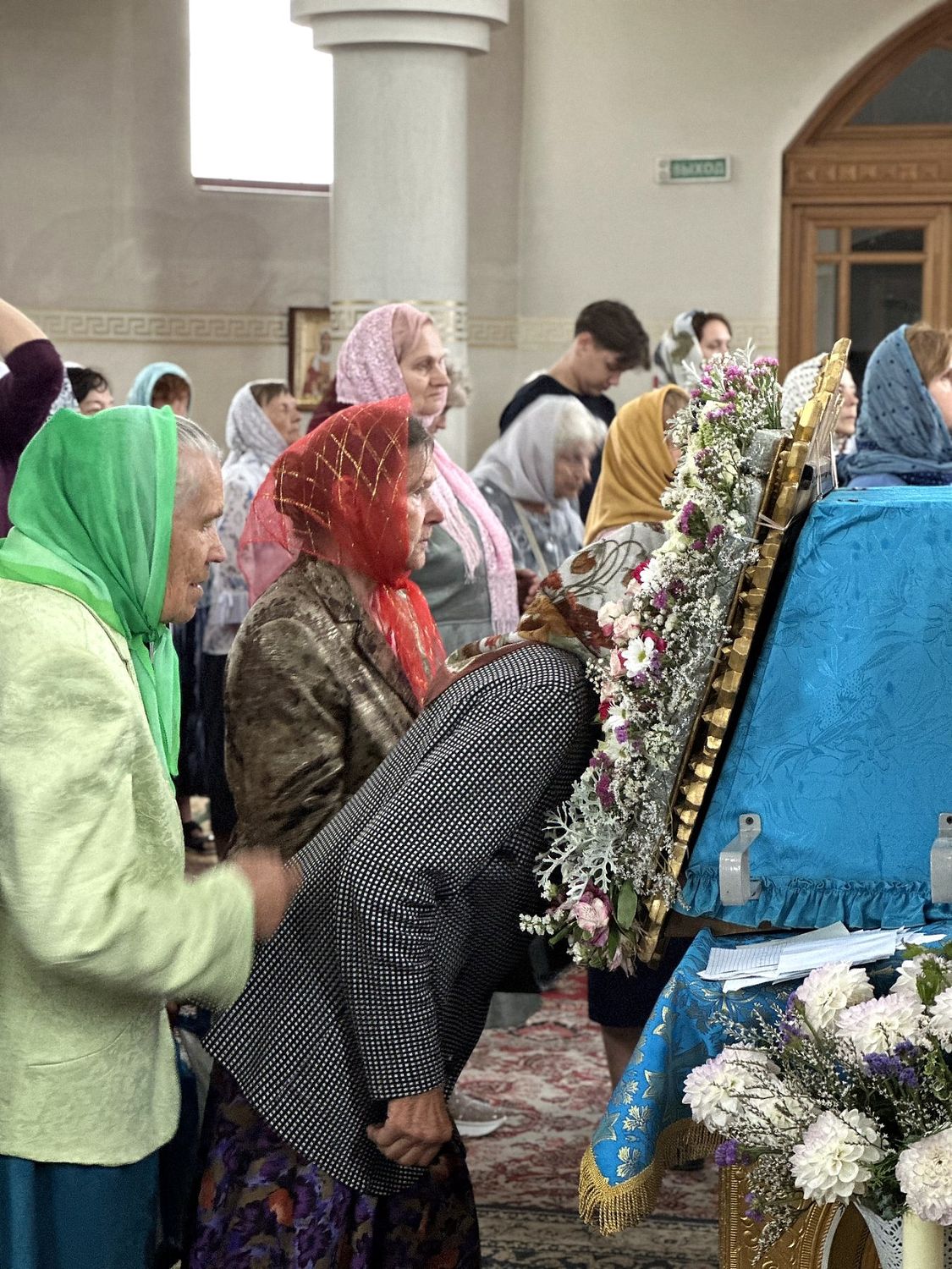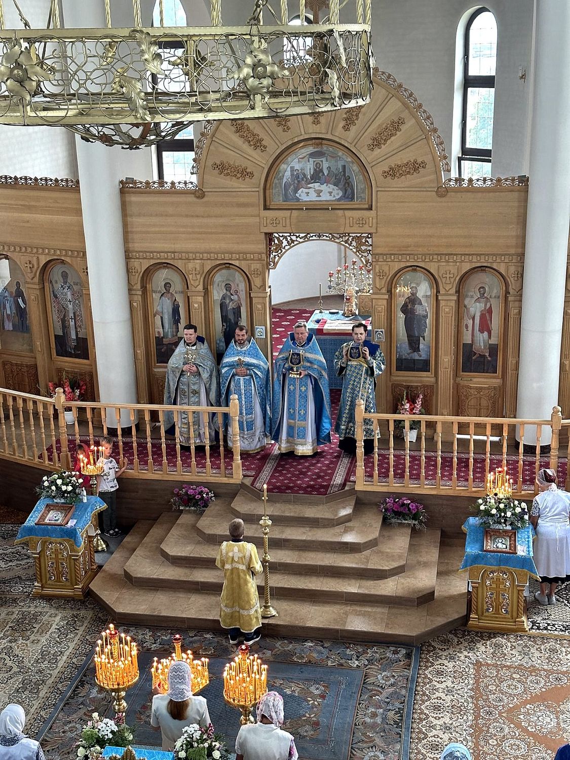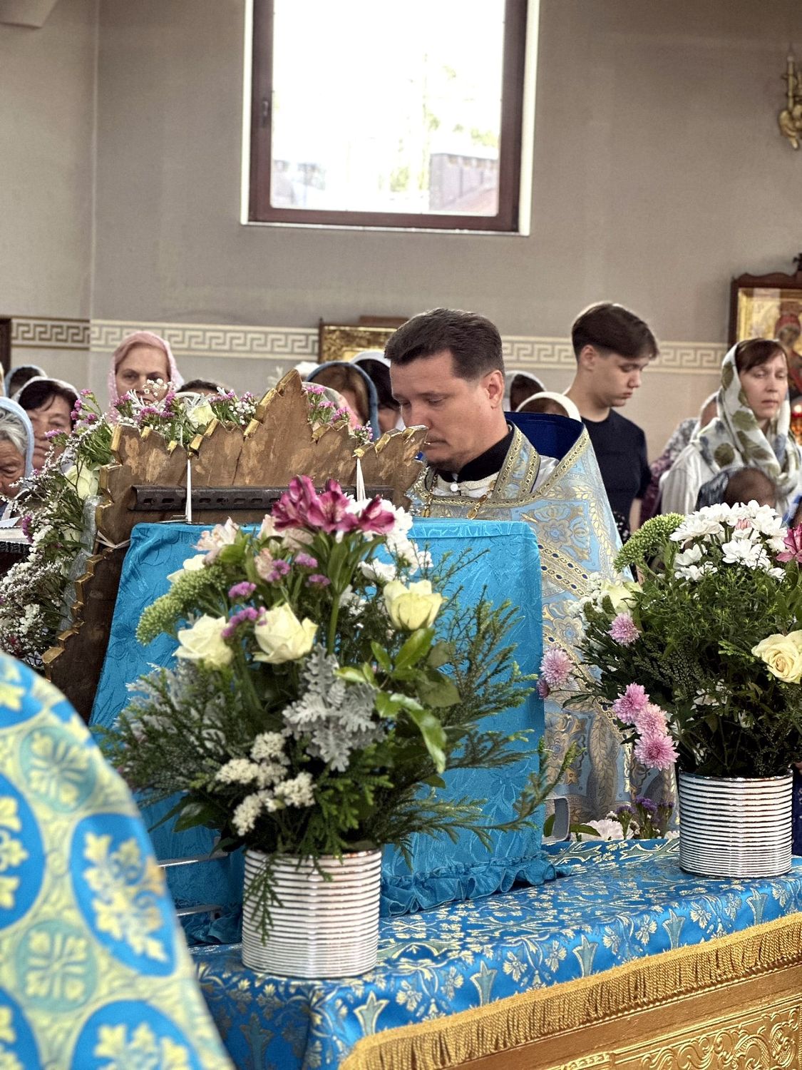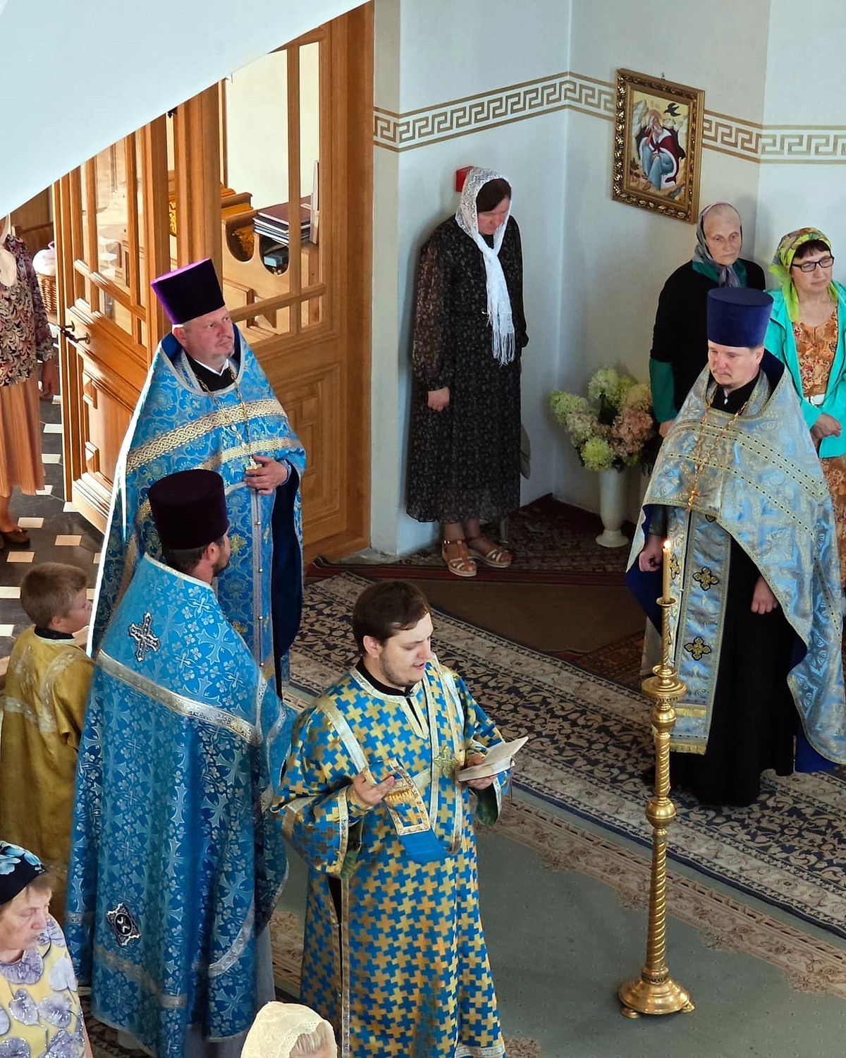 ïîíåäåëüíèê, 5 àâãóñòà, íàø ïðèõîä îòìå÷àë ñâîé ïðåñòîëüíûé ïðàçäíèê â ÷åñòü èêîíû Áîæèåé Ìàòåðè «Âñåõ ñêîðáÿùèõ Ðàäîñòü». Íàêàíóíå âå÷åðîì áûëî ñîâåðøåíî ïðàçäíè÷íîå Âñåíîùíîå áäåíèå. Ïî îêîí÷àíèè áîãîñëóæåíèÿ íàñòîÿòåëü õðàìà ïðîòîèåðåé Äèìèòðèé Ëóêàøåâè÷ ïîçäðàâèë ïðèõîæàí è ãîñòåé ñ ïðåñòîëüíûì ïðàçäíèêîì. Ðàíî óòðîì, 5 àâãóñòà, î. Àëåêñèåì áûë ñîâåðø¸í âîäîñâÿòíûé ìîëåáåí. Çàòåì, ïðè ìíîãî÷èñëåííîì ñòå÷åíèè ìîëÿùèõñÿ, ñîñòîÿëàñü Áîæåñòâåííàÿ ëèòóðãèÿ, âîçãëàâëÿåìàÿ íàñòîÿòåëåì íàøåãî õðàìà, â ñîñëóæåíèè äóõîâåíñòâà ïðèõîäà. Ïî îêîí÷àíèè ëèòóðãèè áûë ñîâåðø¸í ïðàçäíè÷íûé êðåñòíûé õîä âîêðóã õðàìà, èìîëåáåí, ïîñëå êîòîðîãî î. Äèìèòðèé îáðàòèëñÿ ê ìîëÿùèìñÿ ñî ñëîâàìè íàçèäàíèÿ, ïîçäðàâèë âñåõ ïðèõîæàí è ãîñòåé ñ ïðåñòîëüíûì ïðàçäíèêîì, è ïîæåëàë âñåì ïðåäñòàòåëüñòâà Áîæèåé Ìàòåðè. Äëÿ ãîñòåé ïðèõîäà ïîñëå ñëóæáû áûëî ïðèãîòîâëåíî óãîùåíèå.
