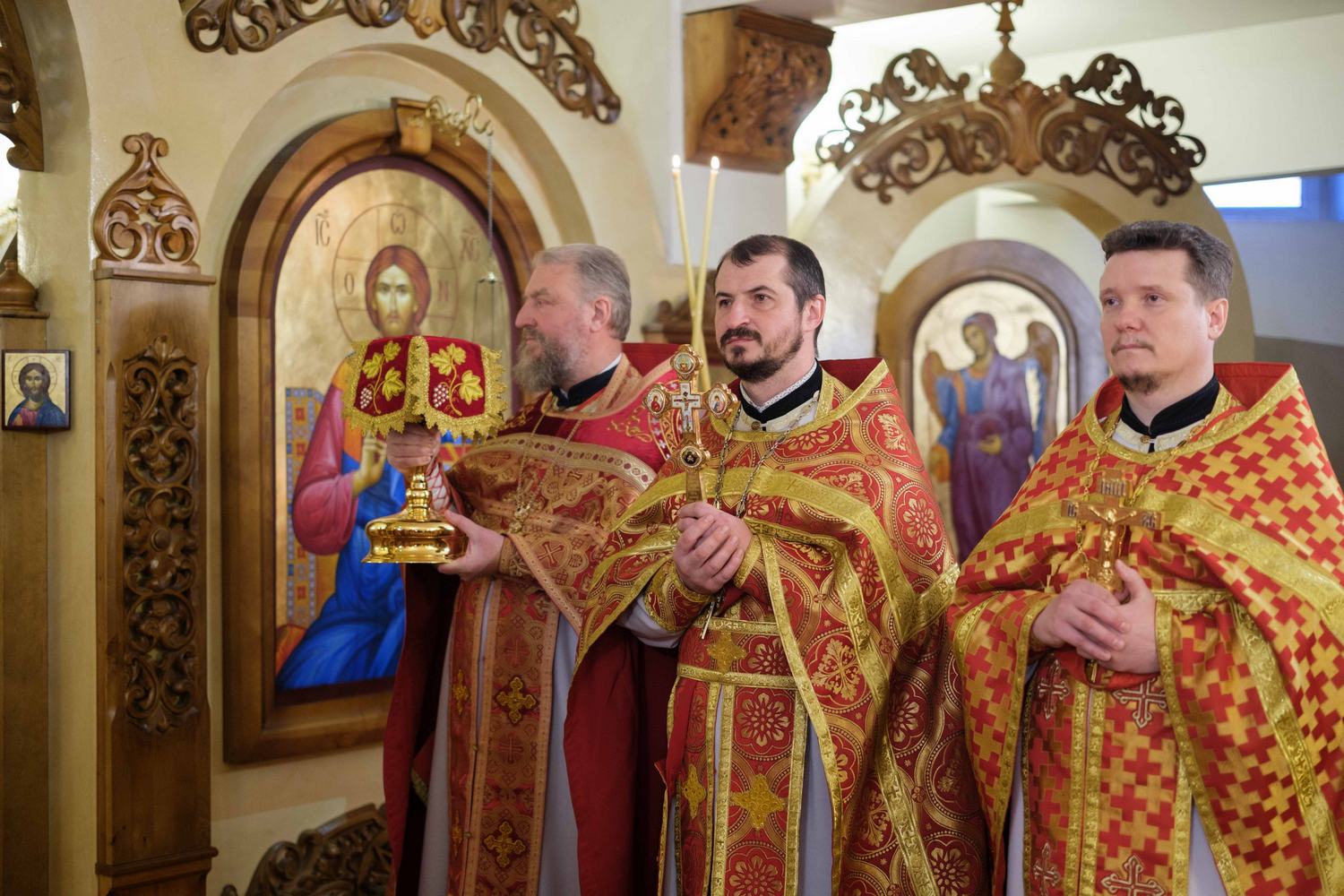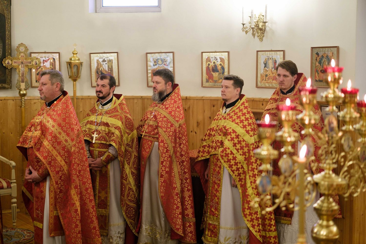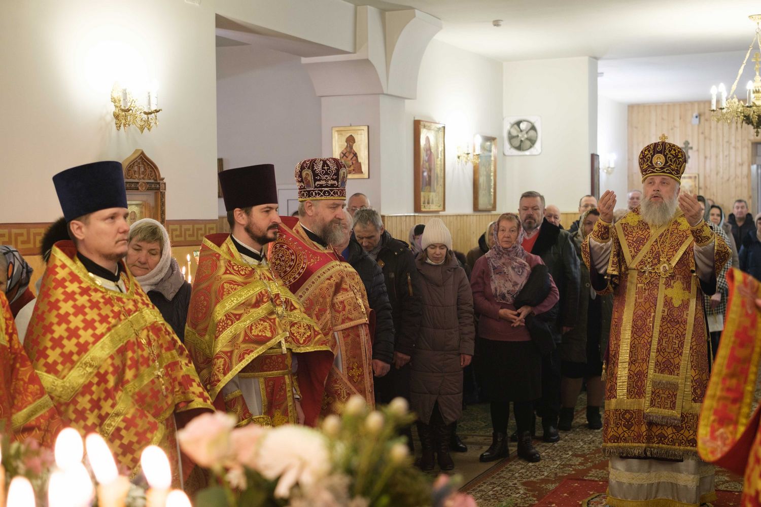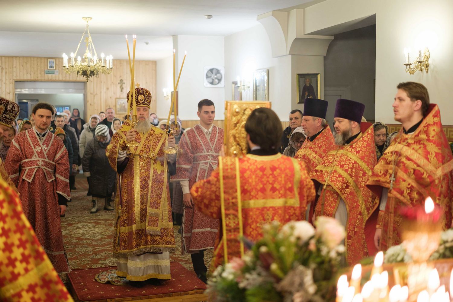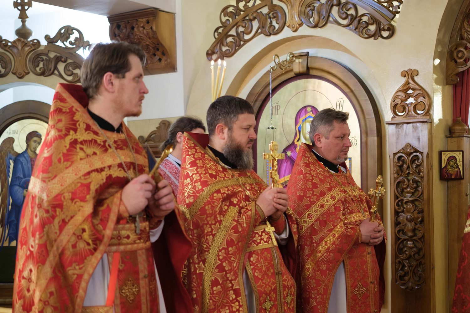 Ïî îêîí÷àíèè Áîæåñòâåííîé ëèòóðãèè àðõèåïèñêîï Èîàíí âîçãëàâèë êðåñòíûé õîä, ñîâåðøèë îêðîïëåíèå ñâÿòîé âîäîé õðàìà.  çàâåðøåíèå áîãîñëóæåíèÿ àðõèïàñòûðü îáðàòèëñÿ ê ìîëÿùèìñÿ ñî ñëîâîì íàçèäàíèÿ, ïîçäðàâèë ïðè÷àñòíèêîâ ñ ïðèíÿòèåì Ñâÿòûõ Òåëà è Êðîâè Õðèñòîâûõ. Íàñòîÿòåëü íàøåãî õðàìà, ïðîò. Äèìèòðèé Ëóêàøåâè÷, îò èìåíè ïðèõîæàí, îáðàòèëñÿ ê Âëàäûêå Èîàííó ñî ñëîâàìè áëàãîäàðíîñòè çà ïîñåùåíèå ïðèõîäà è ñîâìåñòíóþ ìîëèòâó.
