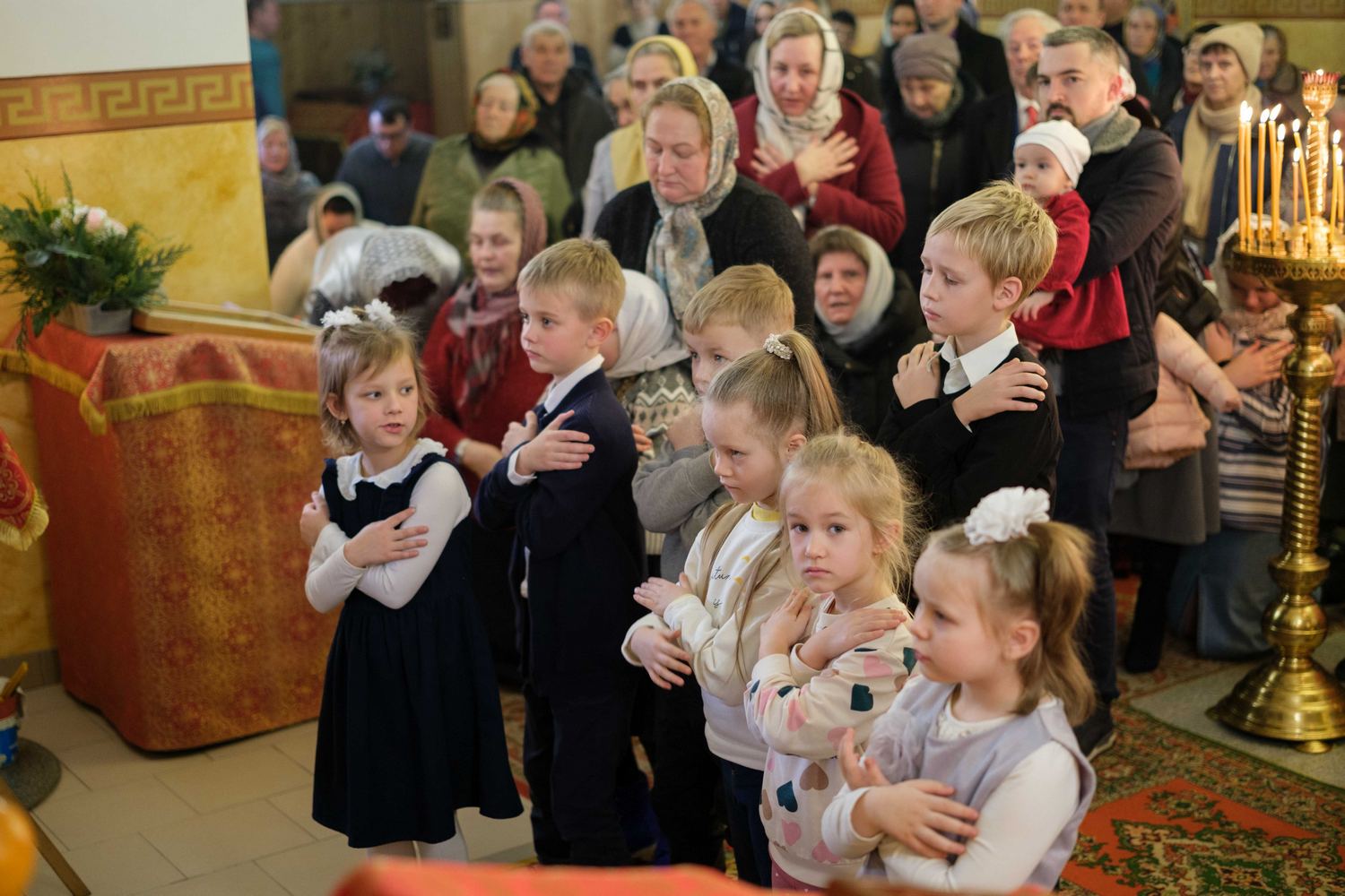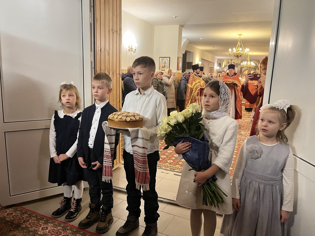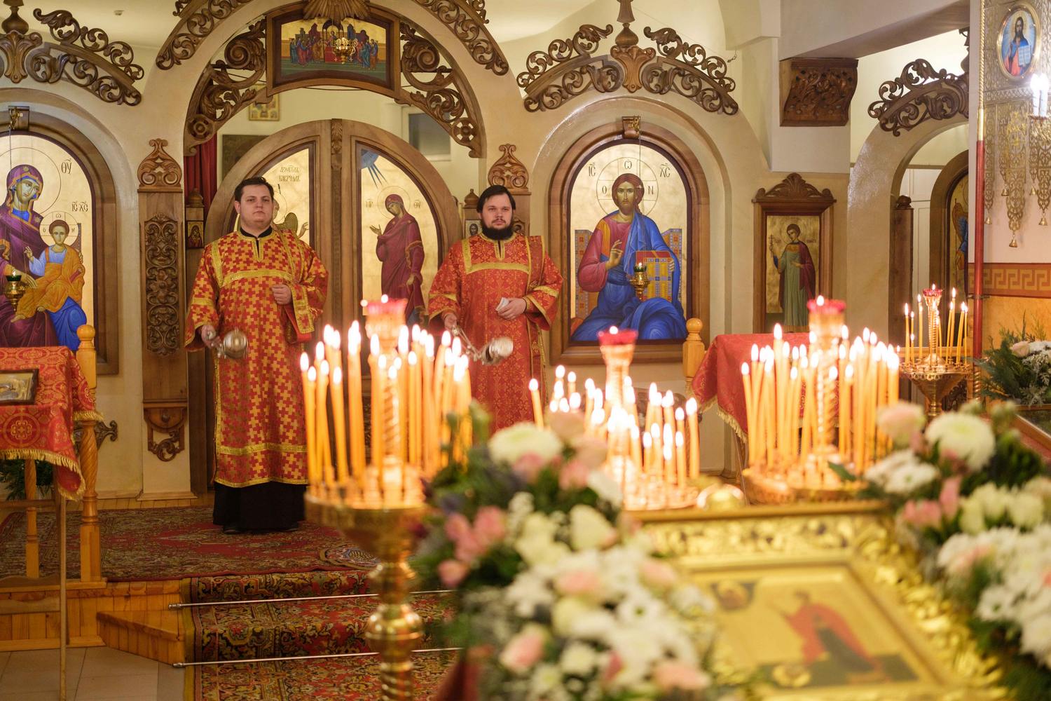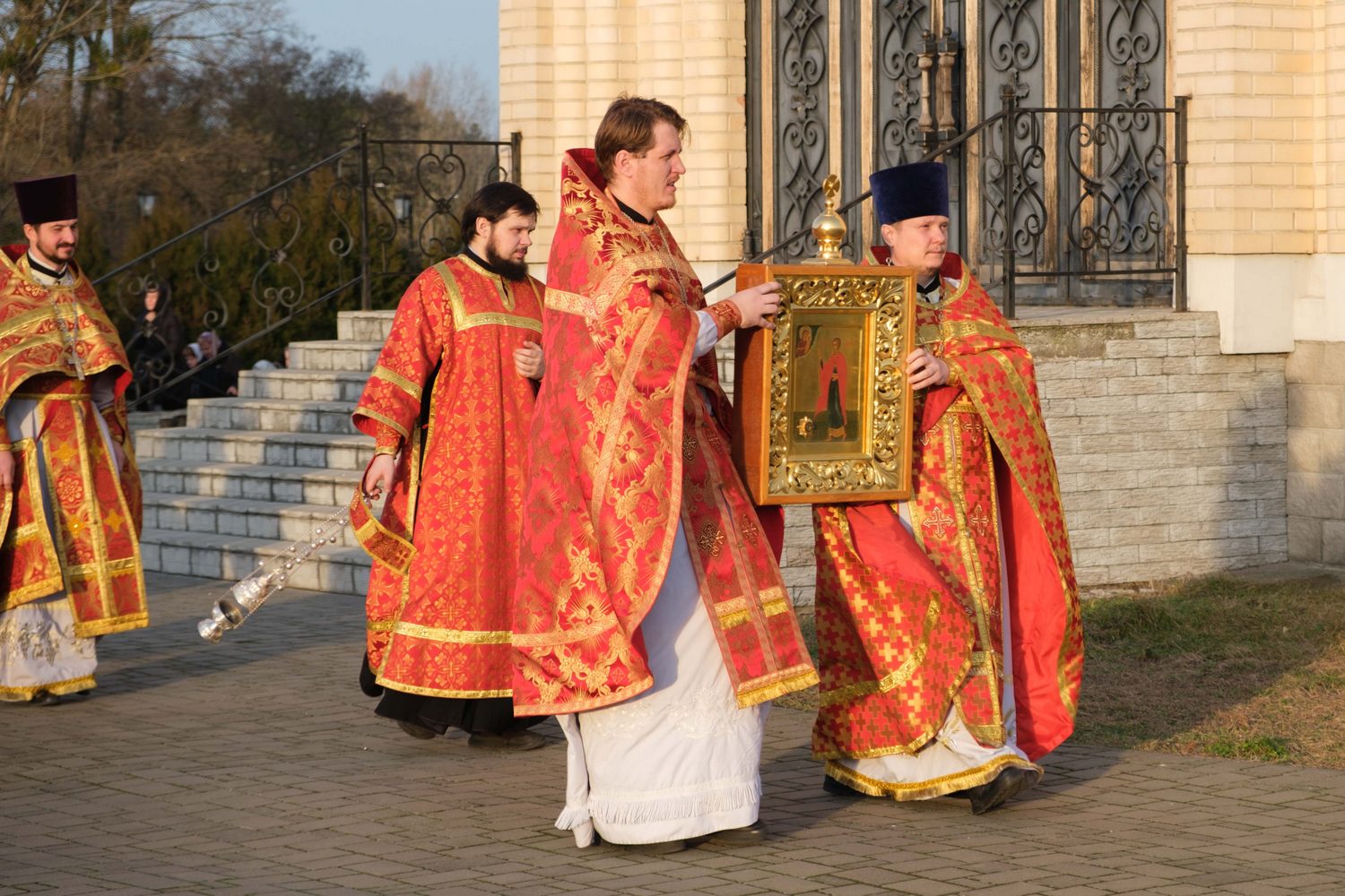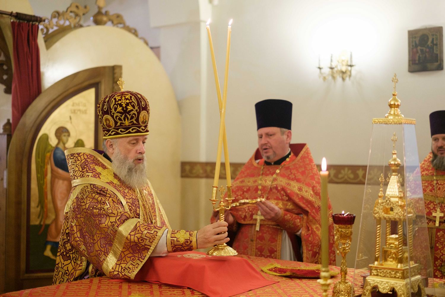 Ïî îêîí÷àíèè Áîæåñòâåííîé ëèòóðãèè àðõèåïèñêîï Èîàíí âîçãëàâèë êðåñòíûé õîä, ñîâåðøèë îêðîïëåíèå ñâÿòîé âîäîé õðàìà.  çàâåðøåíèå áîãîñëóæåíèÿ àðõèïàñòûðü îáðàòèëñÿ ê ìîëÿùèìñÿ ñî ñëîâîì íàçèäàíèÿ, ïîçäðàâèë ïðè÷àñòíèêîâ ñ ïðèíÿòèåì Ñâÿòûõ Òåëà è Êðîâè Õðèñòîâûõ. Íàñòîÿòåëü íàøåãî õðàìà, ïðîò. Äèìèòðèé Ëóêàøåâè÷, îò èìåíè ïðèõîæàí, îáðàòèëñÿ ê Âëàäûêå Èîàííó ñî ñëîâàìè áëàãîäàðíîñòè çà ïîñåùåíèå ïðèõîäà è ñîâìåñòíóþ ìîëèòâó.