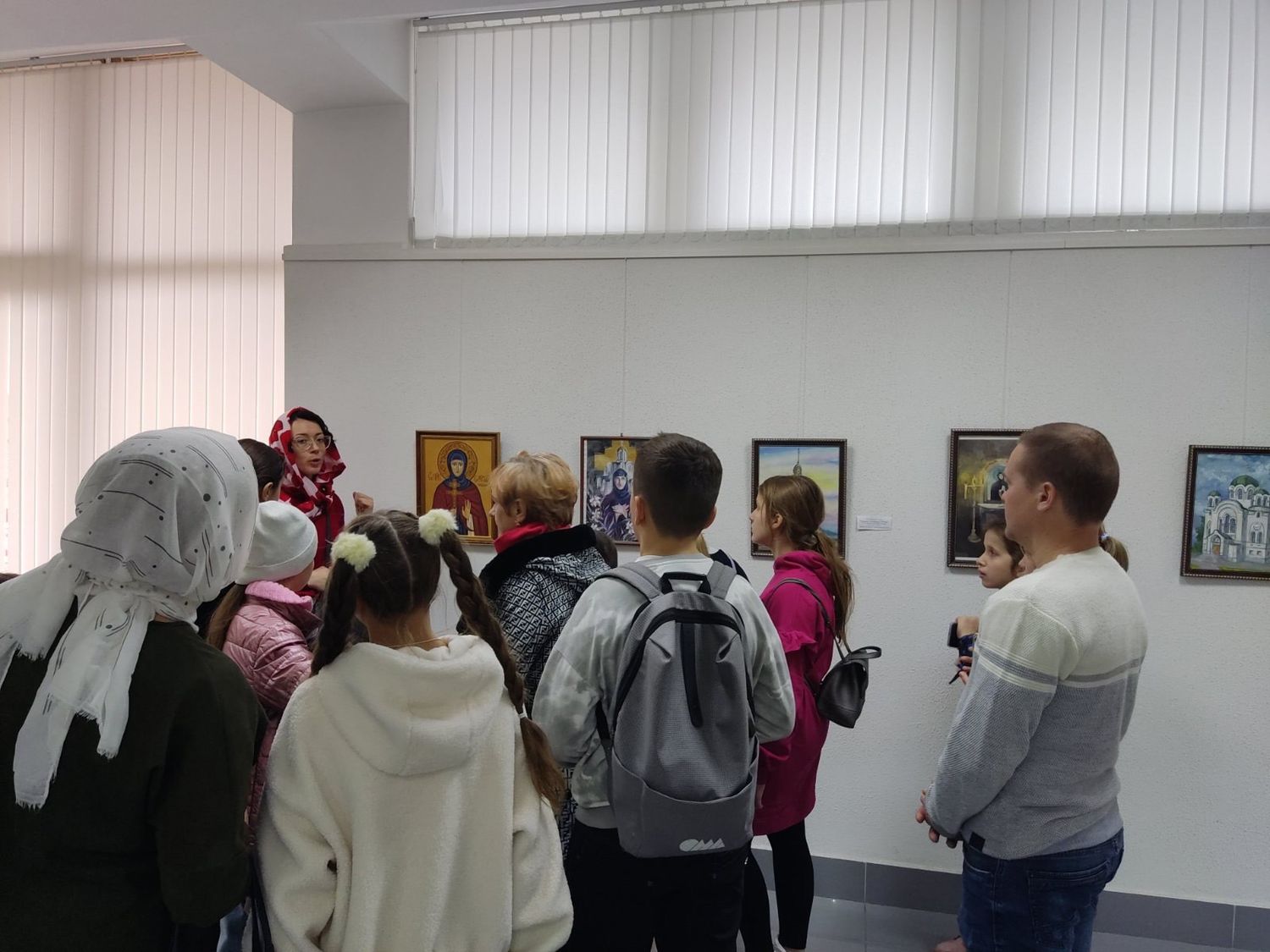 26 îêòÿáðÿ ó÷àùèåñÿ 4-ãî êëàññà íàøåé Âîñêðåñíîé øêîëû ïîñåòèëè âûñòàâêó "Ñâÿòîñòü çåìëè Áåëîðóññêîé", ïîñâÿù¸ííóþ 850-ëåòèþ ïðåñòàâëåíèÿ ñâÿòîé ïðåïîäîáíîé Åâôðîñèíèè Ïîëîöêîé è Ãîäó ìèðà è ñîçèäàíèÿ. Ðåáÿòà ñ èíòåðåñîì âñìàòðèâàëèñü â õóäîæåñòâåííûå îáðàçû, âìåñòå ñ ïåäàãîãîì âñïîìíèëè æèòèå ñâÿòîé, ìûñëåííî ïåðåíåñëèñü â äðåâíèé ãîðîä Ïîëîöê â Ñïàñî-Ïðåîáðàæåíñêèé õðàì è Ñîôèéñêèé ñîáîð. Îñîáûé èíòåðåñ ó äåòåé âûçâàëè ðàáîòû ó÷àùèõñÿ èêîíîïèñíûõ è õóäîæåñòâåííûõ êðóæêîâ âîñêðåñíûõ øêîë Áåëàðóñè, êîòîðûå ãàðìîíè÷íî äîïîëíèëè ïîëîòíà èìåíèòûõ õóäîæíèêîâ Áåëàðóñè, Ðîññèè, Ìîëäîâû.