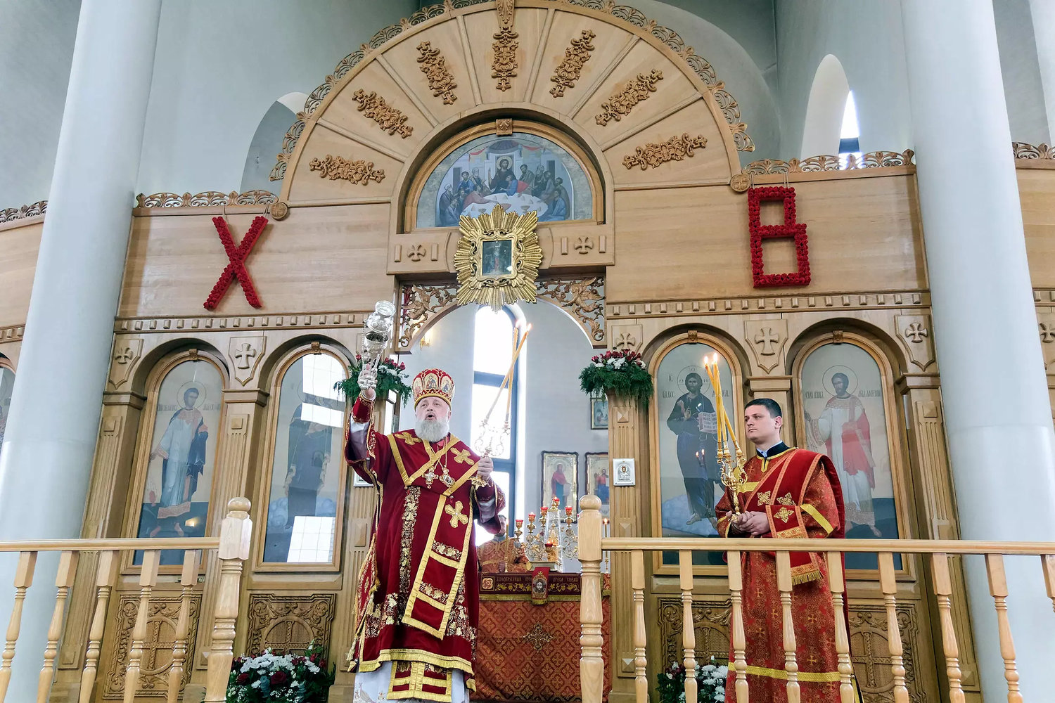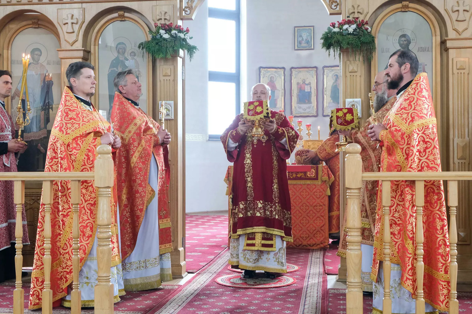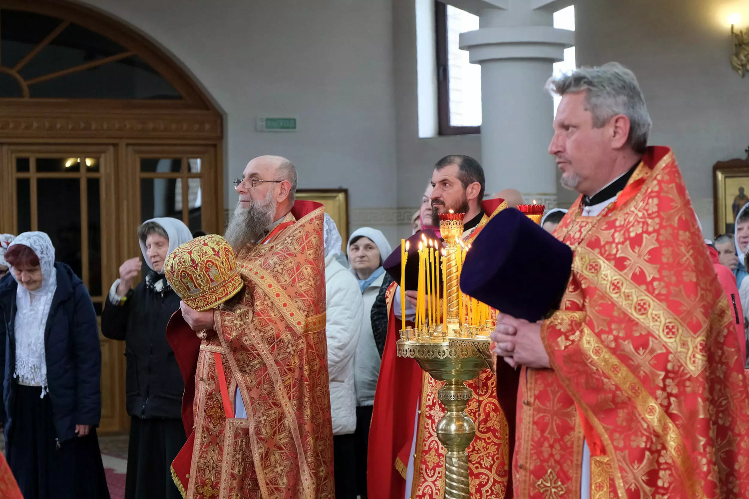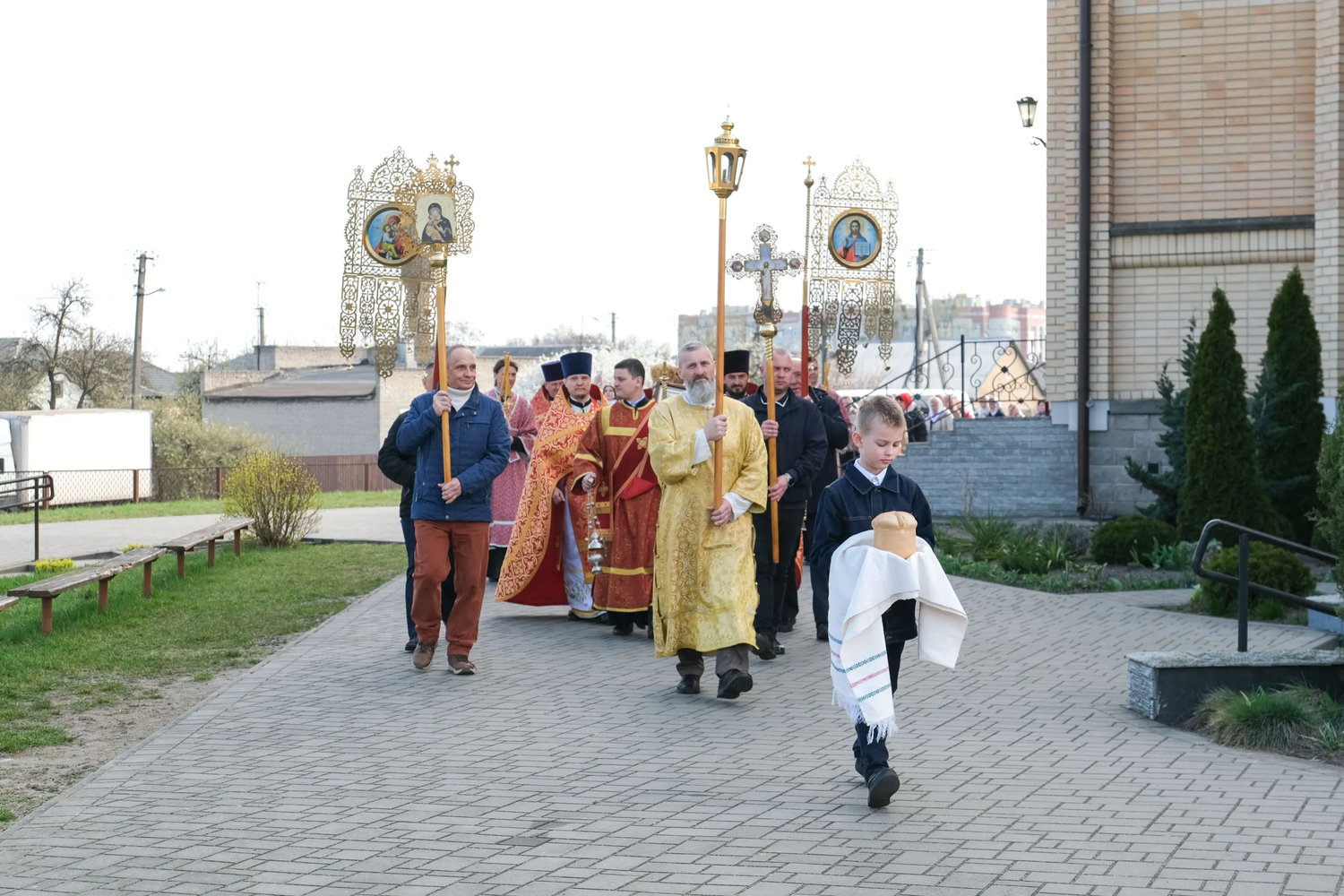 Ïî îêîí÷àíèè Áîæåñòâåííîé ëèòóðãèè àðõèåïèñêîï Èîàíí âîçãëàâèë êðåñòíûé õîä, ñîâåðøèë îêðîïëåíèå ñâÿòîé âîäîé õðàìà.  çàâåðøåíèå áîãîñëóæåíèÿ àðõèïàñòûðü îáðàòèëñÿ ê ìîëÿùèìñÿ ñî ñëîâîì íàçèäàíèÿ, ïîçäðàâèë äóõîâåíñòâî è ïðèõîæàí ñî ñâåòëûì ïðàçäíèêîì Ïàñõè Õðèñòîâîé, ïðè÷àñòíèêîâ ñ ïðèíÿòèåì Ñâÿòûõ Òåëà è Êðîâè Õðèñòîâûõ. Äàëåå íàñòîÿòåëü õðàìà îò èìåíè ïðèõîæàí îáðàòèëñÿ ê Óïðàâëÿþùåìó Áðåñòñêîé åïàðõèåé ñî ñëîâàìè áëàãîäàðíîñòè çà ïîñåùåíèå ïðèõîäà è ñîâìåñòíóþ ìîëèòâó.