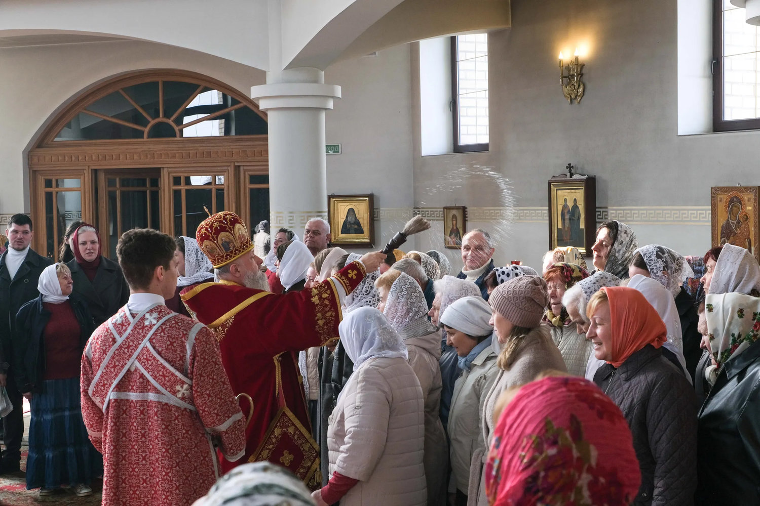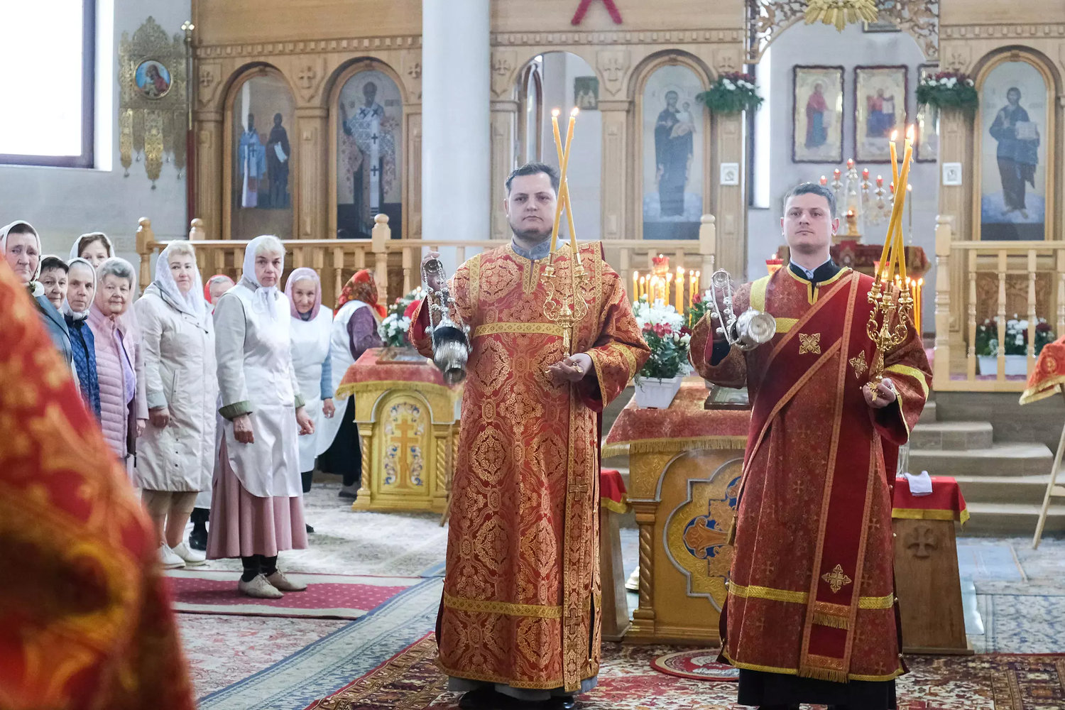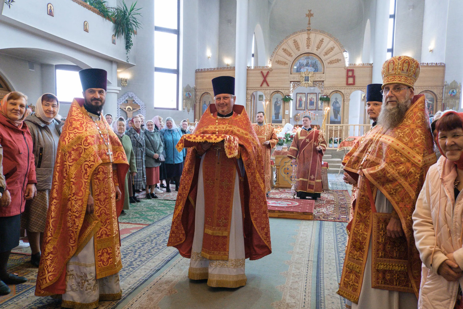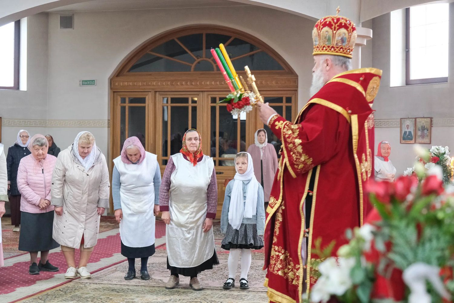 Ïî îêîí÷àíèè Áîæåñòâåííîé ëèòóðãèè àðõèåïèñêîï Èîàíí âîçãëàâèë êðåñòíûé õîä, ñîâåðøèë îêðîïëåíèå ñâÿòîé âîäîé õðàìà.  çàâåðøåíèå áîãîñëóæåíèÿ àðõèïàñòûðü îáðàòèëñÿ ê ìîëÿùèìñÿ ñî ñëîâîì íàçèäàíèÿ, ïîçäðàâèë äóõîâåíñòâî è ïðèõîæàí ñî ñâåòëûì ïðàçäíèêîì Ïàñõè Õðèñòîâîé, ïðè÷àñòíèêîâ ñ ïðèíÿòèåì Ñâÿòûõ Òåëà è Êðîâè Õðèñòîâûõ. Äàëåå íàñòîÿòåëü õðàìà îò èìåíè ïðèõîæàí îáðàòèëñÿ ê Óïðàâëÿþùåìó Áðåñòñêîé åïàðõèåé ñî ñëîâàìè áëàãîäàðíîñòè çà ïîñåùåíèå ïðèõîäà è ñîâìåñòíóþ ìîëèòâó.