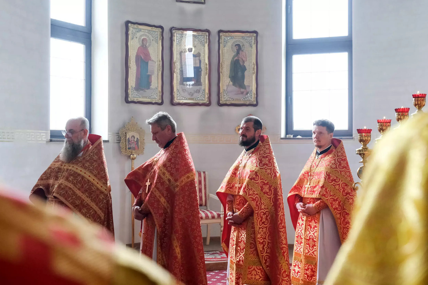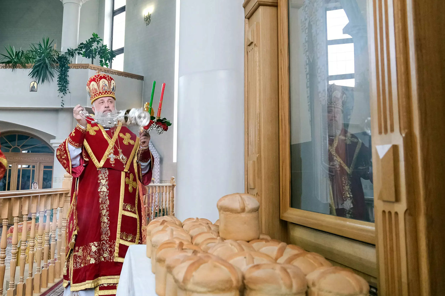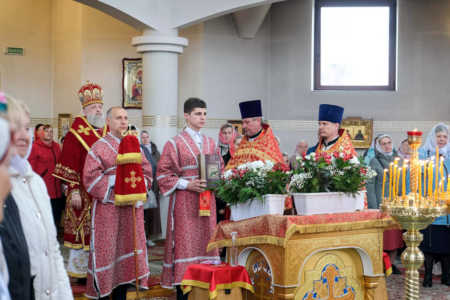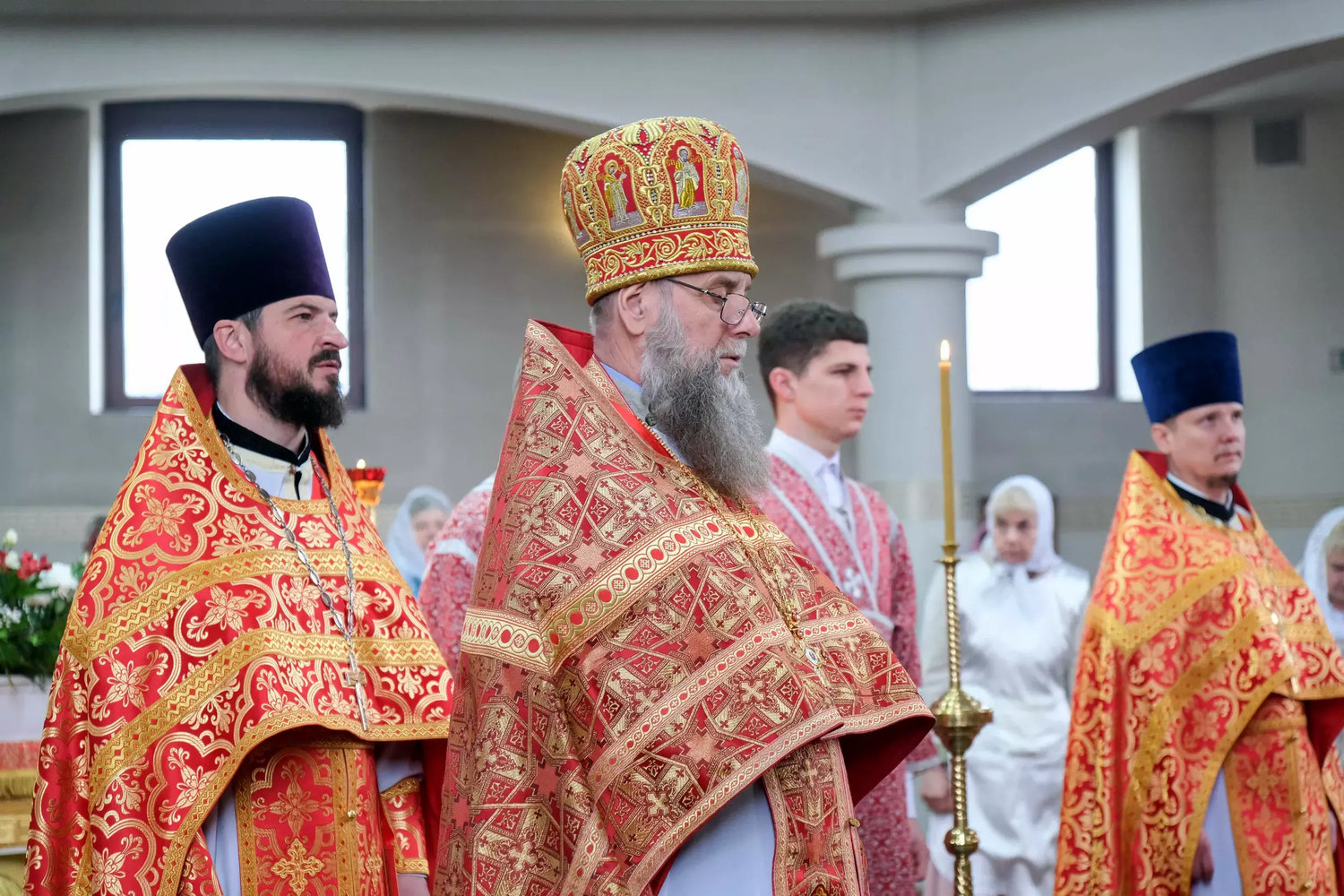 Ïî îêîí÷àíèè Áîæåñòâåííîé ëèòóðãèè àðõèåïèñêîï Èîàíí âîçãëàâèë êðåñòíûé õîä, ñîâåðøèë îêðîïëåíèå ñâÿòîé âîäîé õðàìà.  çàâåðøåíèå áîãîñëóæåíèÿ àðõèïàñòûðü îáðàòèëñÿ ê ìîëÿùèìñÿ ñî ñëîâîì íàçèäàíèÿ, ïîçäðàâèë äóõîâåíñòâî è ïðèõîæàí ñî ñâåòëûì ïðàçäíèêîì Ïàñõè Õðèñòîâîé, ïðè÷àñòíèêîâ ñ ïðèíÿòèåì Ñâÿòûõ Òåëà è Êðîâè Õðèñòîâûõ. Äàëåå íàñòîÿòåëü õðàìà îò èìåíè ïðèõîæàí îáðàòèëñÿ ê Óïðàâëÿþùåìó Áðåñòñêîé åïàðõèåé ñî ñëîâàìè áëàãîäàðíîñòè çà ïîñåùåíèå ïðèõîäà è ñîâìåñòíóþ ìîëèòâó.