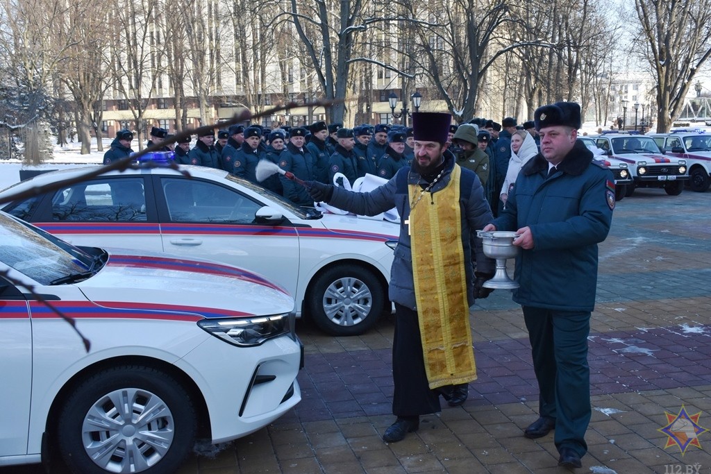 Ïîñëå ïîçäðàâëåíèé ïðîçâó÷àâøèõ îò ðóêîâîäñòâà îáëàñòè è âðó÷åíèÿ êëþ÷åé îò íîâûõ ñëóæåáíûõ àâòîìîáèëåé, î. Ìèõàèë òàêæå ïîçäðàâèë âñåõ ñ ïðàçäíèêîì Êðåùåíèÿ Ãîñïîäíÿ è ñ Äí¸ì ñïàñàòåëÿ Ðåñïóáëèêè Áåëàðóñü.  ñâî¸ì ñëîâå ñâÿùåííèê îáðàòèë âíèìàíèå ñïàñàòåëåé íà âàæíîñòü ìîëèòâû ê Áîãó, îñîáåííî â ìîìåíòû íåñåíèÿ ñëóæáû.  çàâåðøåíèå ñâîåãî îáðàùåíèÿ èåðåé Ìèõàèë ïðî÷èòàë ìîëèòâó íà îñâÿùåíèå àâòîìîáèëåé è îêðîïèë ñâÿòîé âîäîé âñþ òåõíèêó è ïðèñóòñòâóþùèõ.
