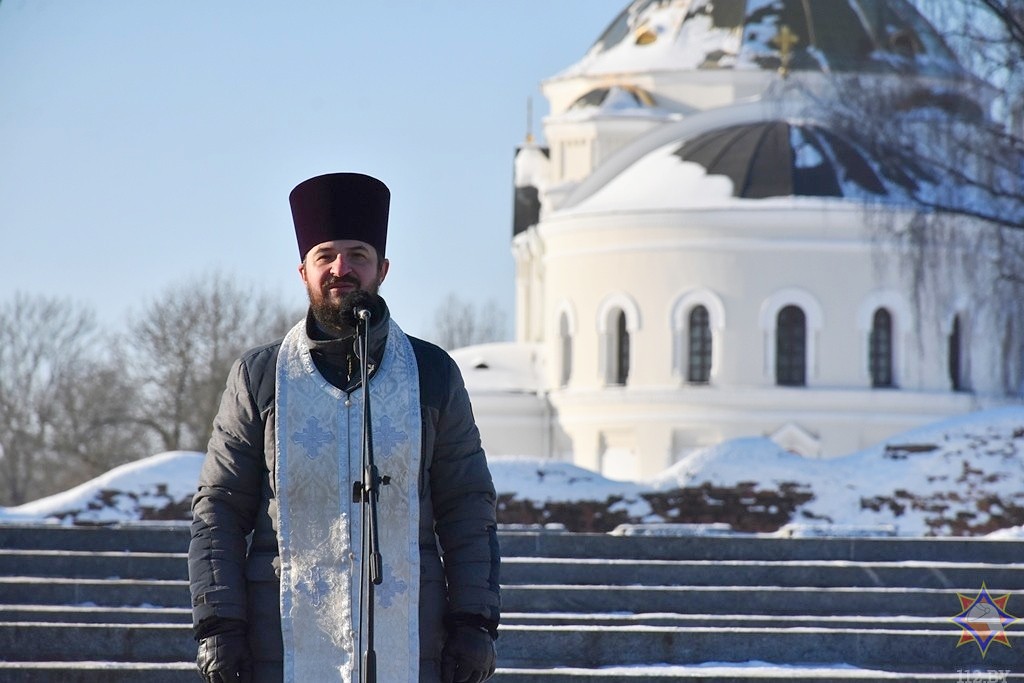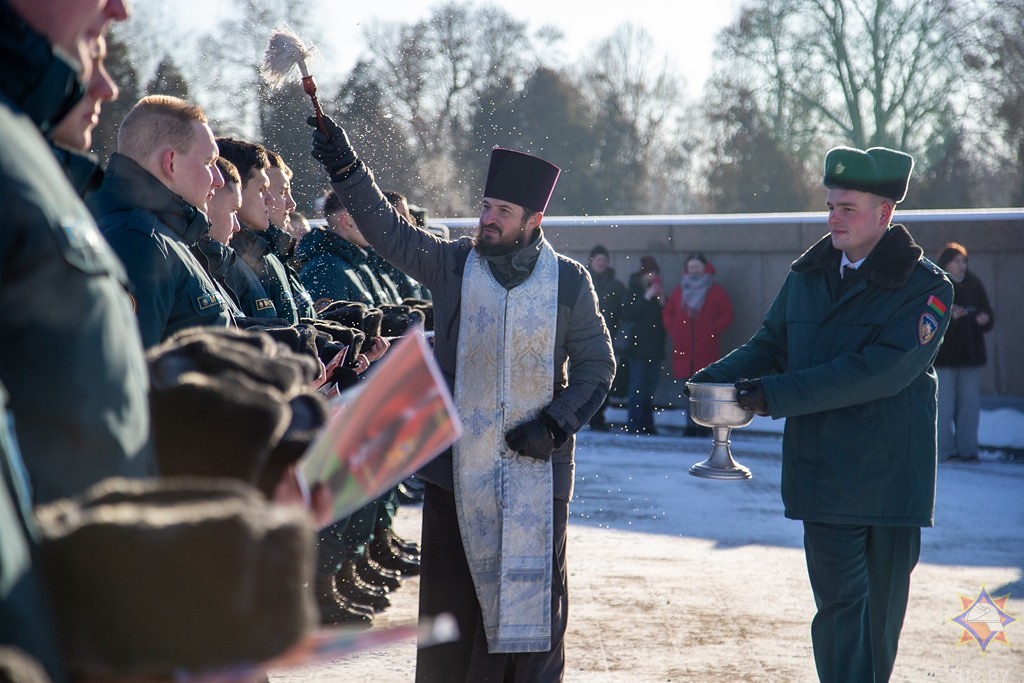 Ïîñëå òîðæåñòâåííîãî ñëîâà íà÷àëüíèêà îáëàñòíîãî óïðàâëåíèÿ Ì×Ñ Âàëåðèÿ Ñòàíèñëàâîâè÷à Ðóäîëüôà è ñàìîãî äåéñòâà ïðèíåñåíèÿ ïðèñÿãè, êî âñåì ïðèñóòñòâóþùèì, à íàèáîëåå ê íîâûì ñîòðóäíèêàì, îáðàòèëñÿ èåðåé Ìèõàèë Äåðêà÷. Ïîçäðàâèâ âñåõ ñ ïðàçäíèêîì Êðåùåíèÿ Ãîñïîäíÿ è ñ äí¸ì ñïàñàòåëÿ Ðåñïóáëèêè Áåëàðóñü, îòåö Ìèõàèë ïîæåëàë ìîëîäûì ðàáîòíèêàì Ì×Ñ ïîìîùè Áîæèåé â íåñåíèè ñëóæáû, è îêðîïèâ èõ ñâÿòîé âîäîé, ñâÿùåííèê Ìèõàèë âìåñòå ñ ðóêîâîäñòâîì Áðåñòñêîãî îáëàñòíîãî óïðàâëåíèÿ Ì×Ñ âîçëîæèë öâåòû ê Âå÷íîìó îãíþ â ìåìîðèàëüíîì êîìïëåêñå.