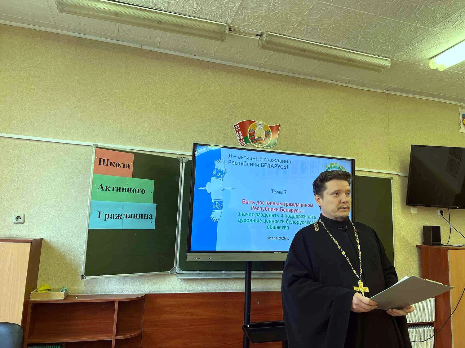 31 ìàðòà 2026 ãîäà, â ÃÓÎ «Ãèìíàçèÿ ¹5 ã. Áðåñòà», â ðàìêàõ èíôîðìàöèîííî îáðàçîâàòåëüíîãî ïðîåêòà «Øêîëà Àêòèâíîãî Ãðàæäàíèíà», ñîñòîÿëàñü âñòðå÷à ó÷àùèõñÿ 9-11 êëàññîâ ñ êëèðèêîì íàøåãî õðàìà, èåðååì Àëåêñèåì Òèòîâûì. Òåìà âñòðå÷è: «Áûòü äîñòîéíûì ãðàæäàíèíîì Ðåñïóáëèêè Áåëàðóñü – çíà÷èò ðàçäåëÿòü è ïîääåðæèâàòü äóõîâíûå öåííîñòè áåëîðóññêîãî îáùåñòâà».  öåíòðå îáñóæäåíèÿ áûëè âàæíûå òåìû: Äóõîâíûå öåííîñòè áåëîðóññêîãî íàðîäà; Èñòîðèêî êóëüòóðíîå íàñëåäèå Áåëàðóñè; Çíà÷åíèå òðàäèöèîííûõ ñåìåéíûõ öåííîñòåé è èõ ðîëü â âîñïèòàíèè ëè÷íîñòè.